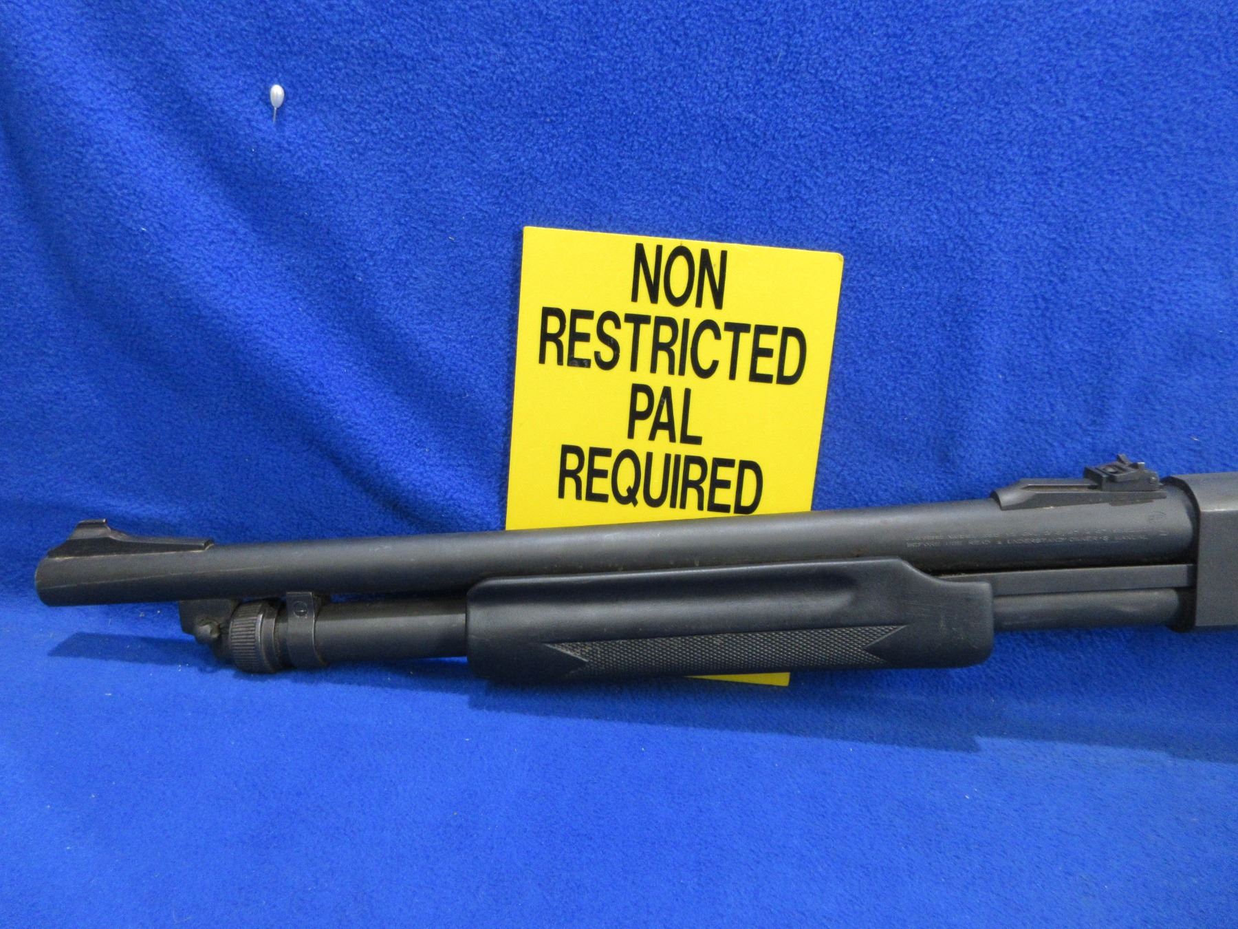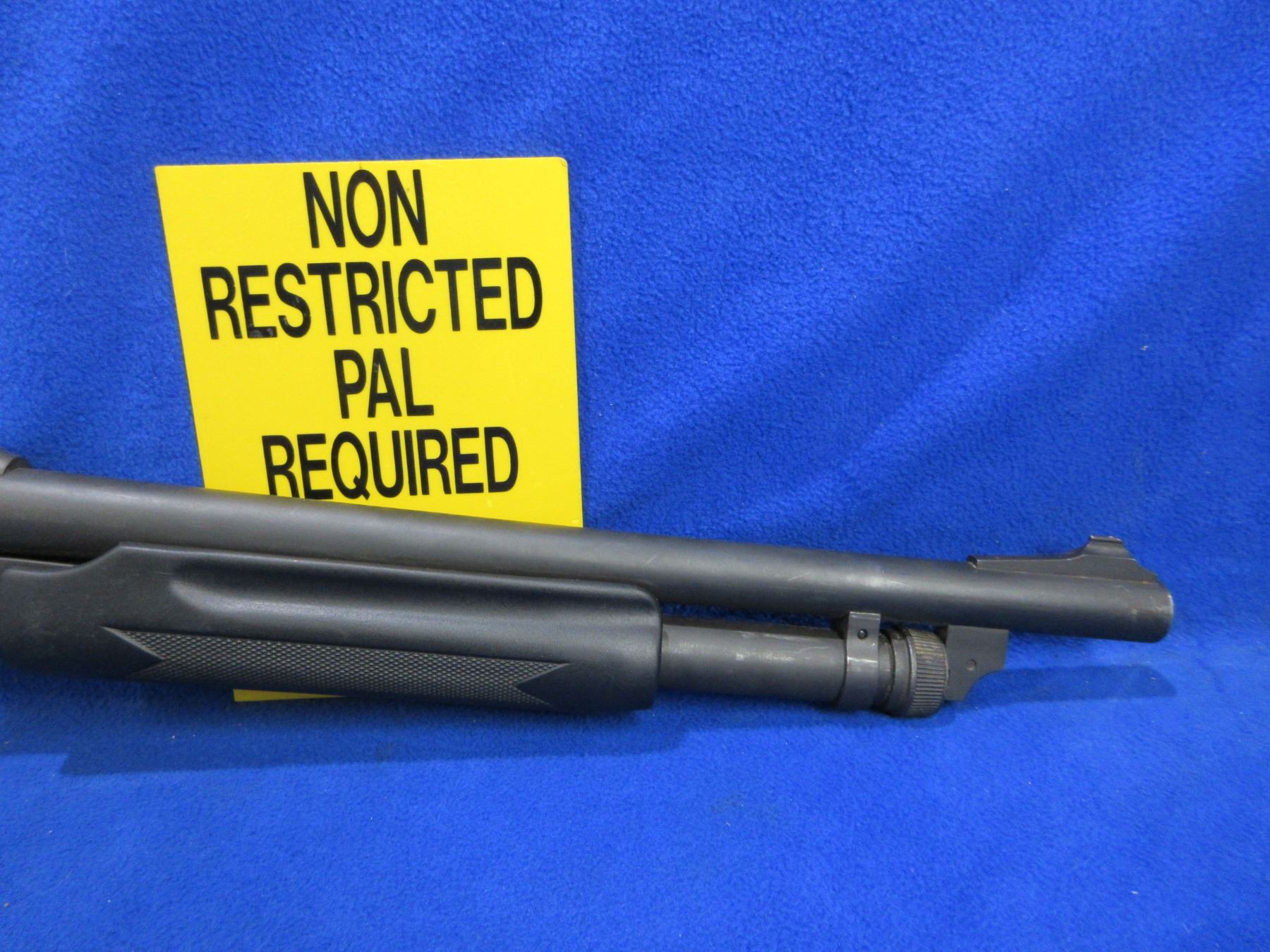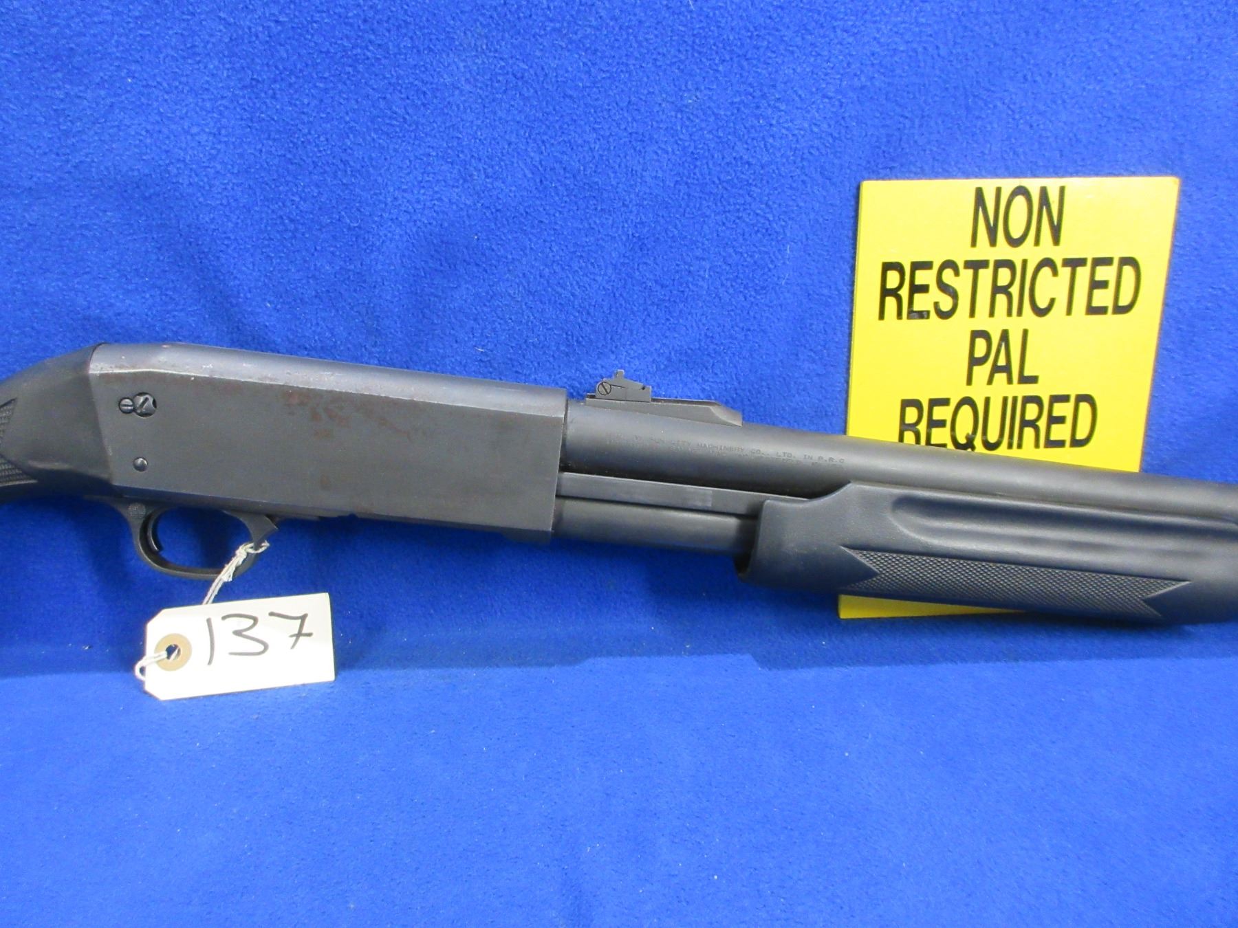 Non-Restricted - Stevens Model 350 in 12 Ga. 2 3/4", 3" - This pump action shotgun appears to be in good to very good working order. Barrel is 18", bore is good, black finish is fair to good with scratches and light pitting, has both sights, synthetic stock is good with usage marks, synthetic forearm is good with usage marks, rubber recoil pad good, comes with swivel studs. Ser # 111128D