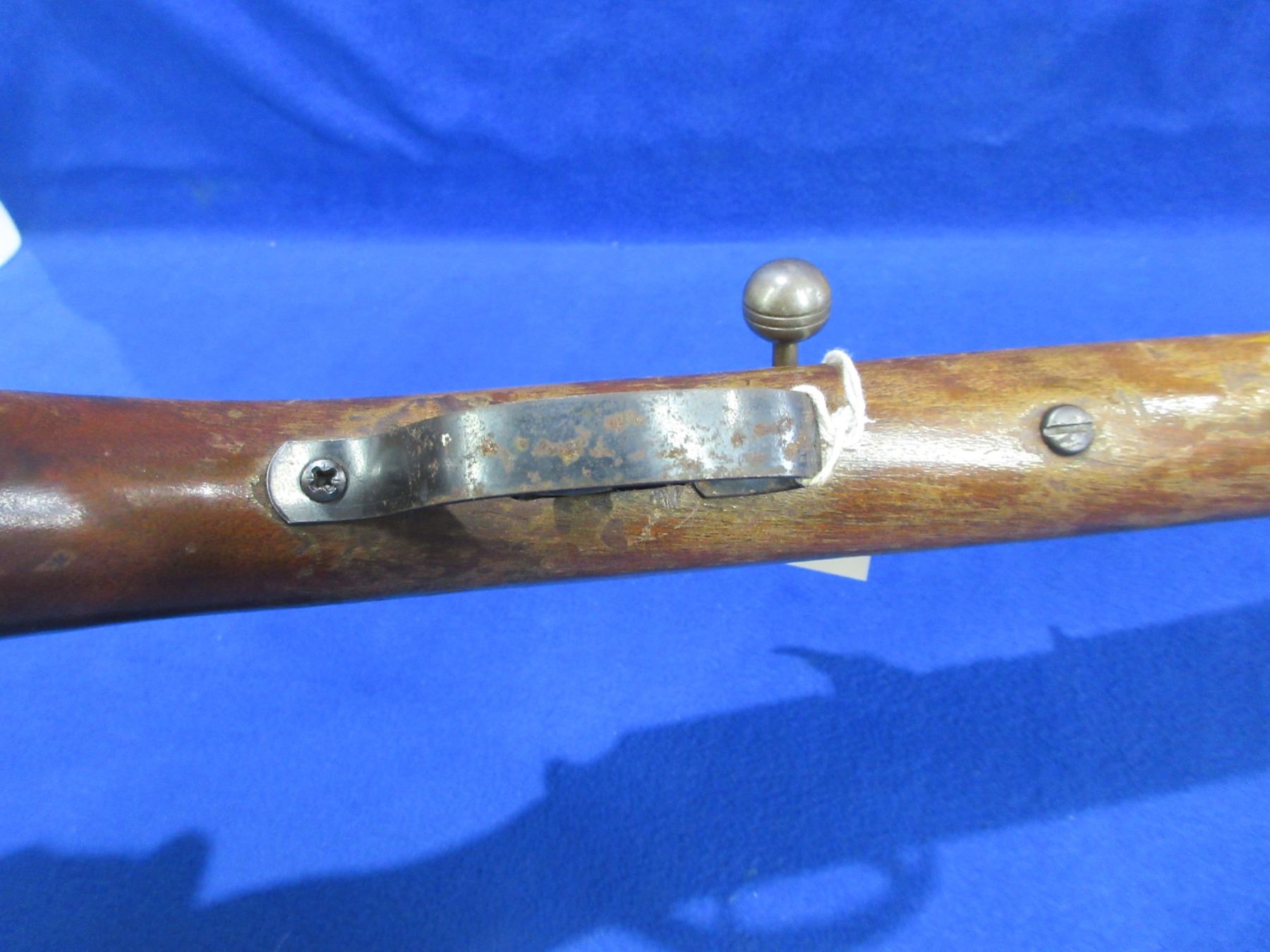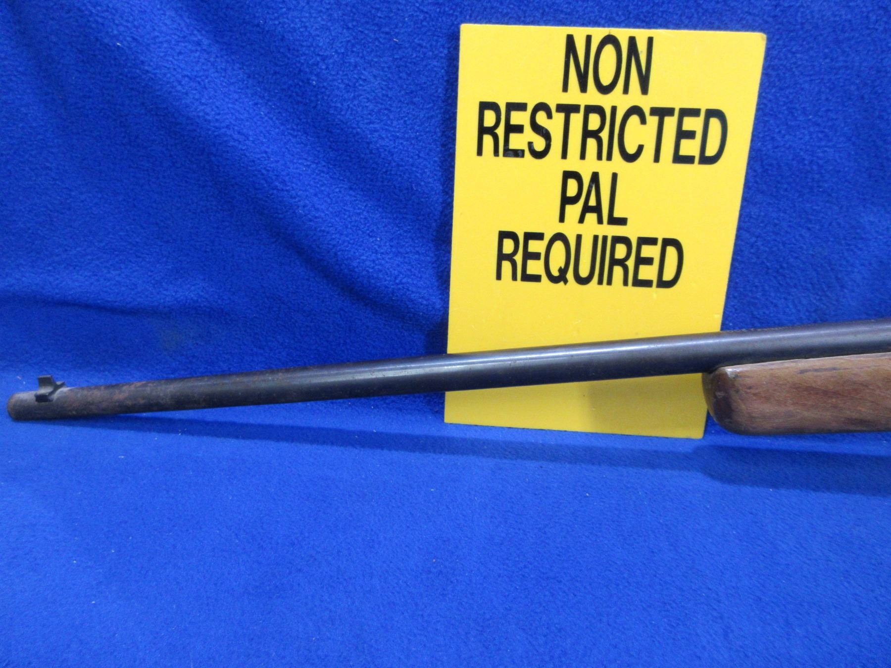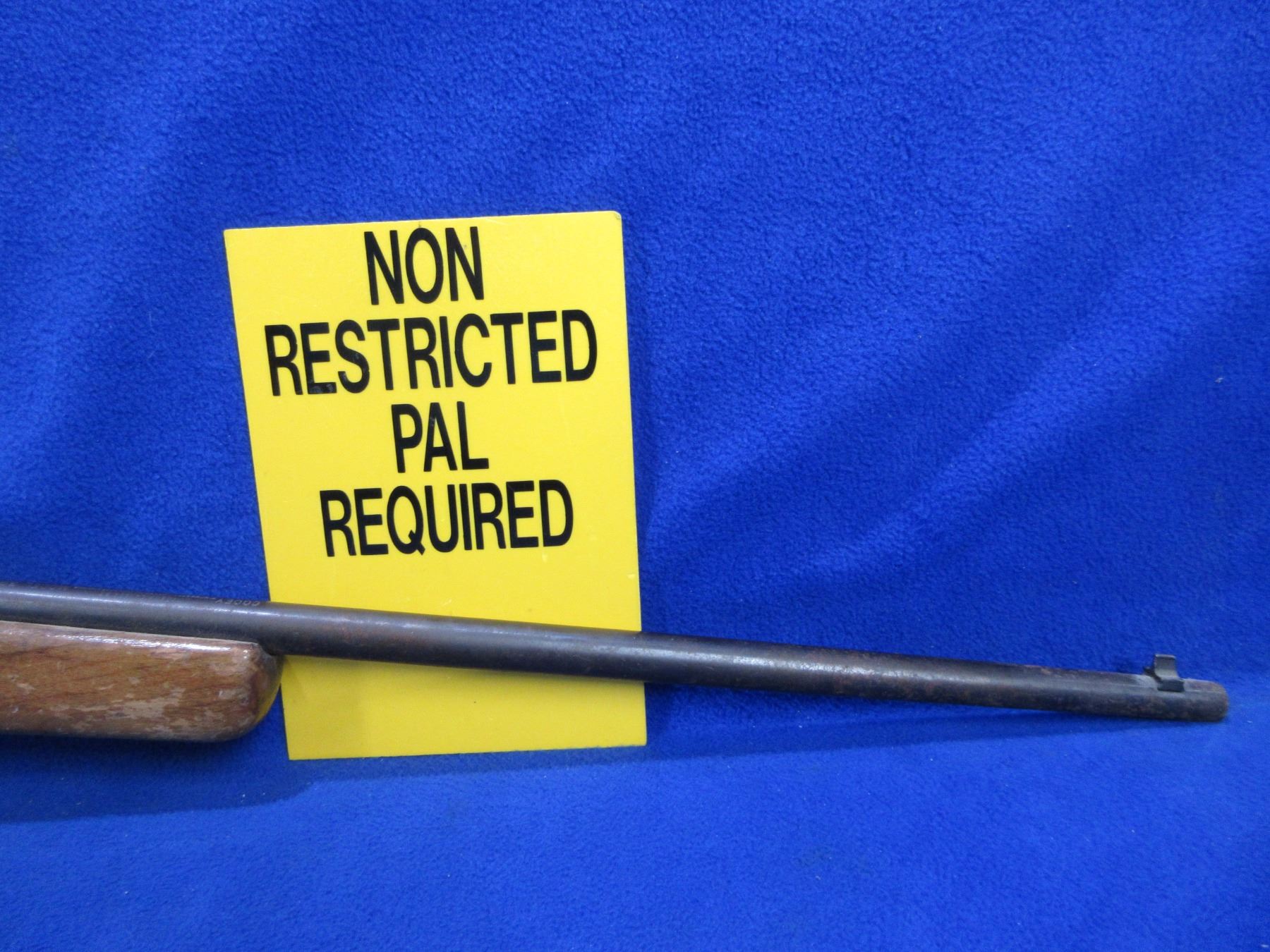 Non-Restricted - Cooey by Winchester Model 39 in 22 S/L/LR - This single shot bolt action rifle appears to be in good working order. Barrel is 22", rifling is good to very good, bluing has rust and pitting, has both sights, stock has a crack on the heel and finish is flaking, metal butt plate good. Ser # None