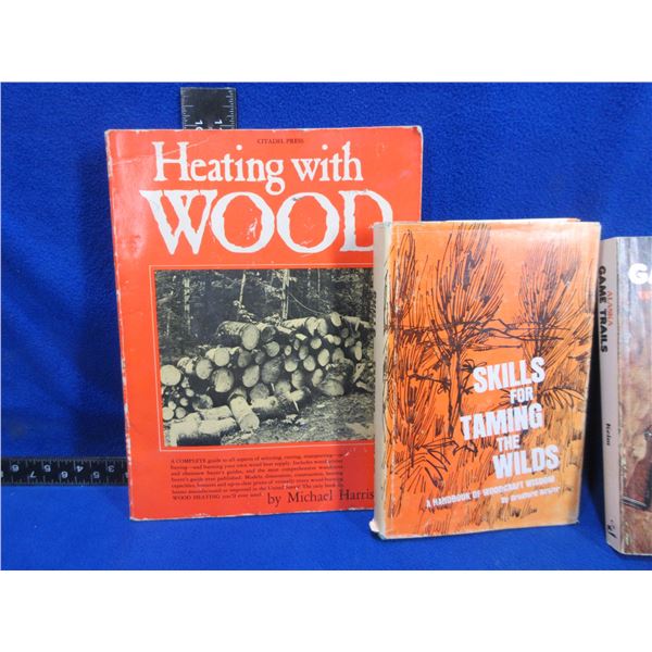 4 Books - Alaska Game Trails, North American Wildlife, Skills for Taming the Wilds, Heating for Wood