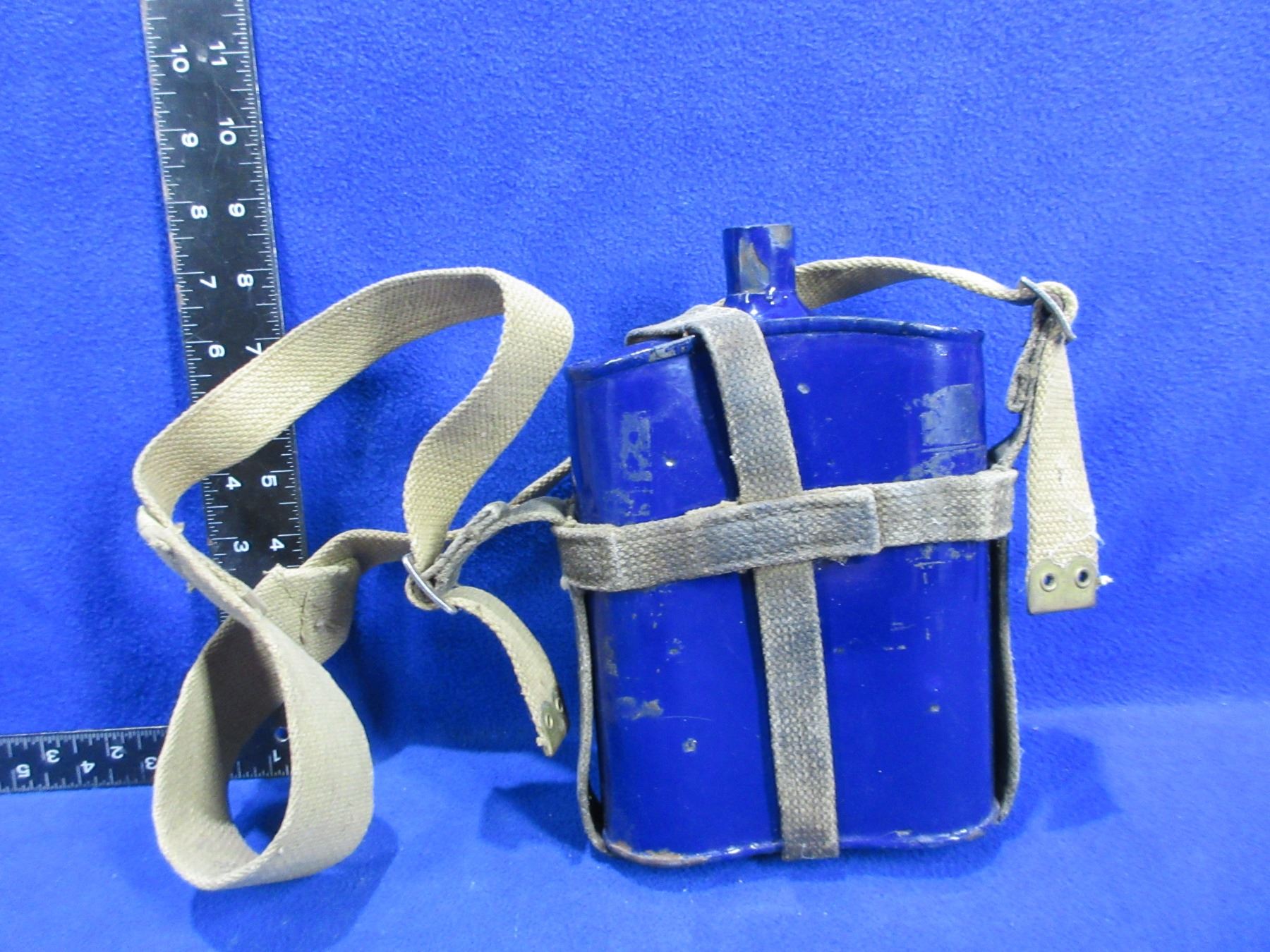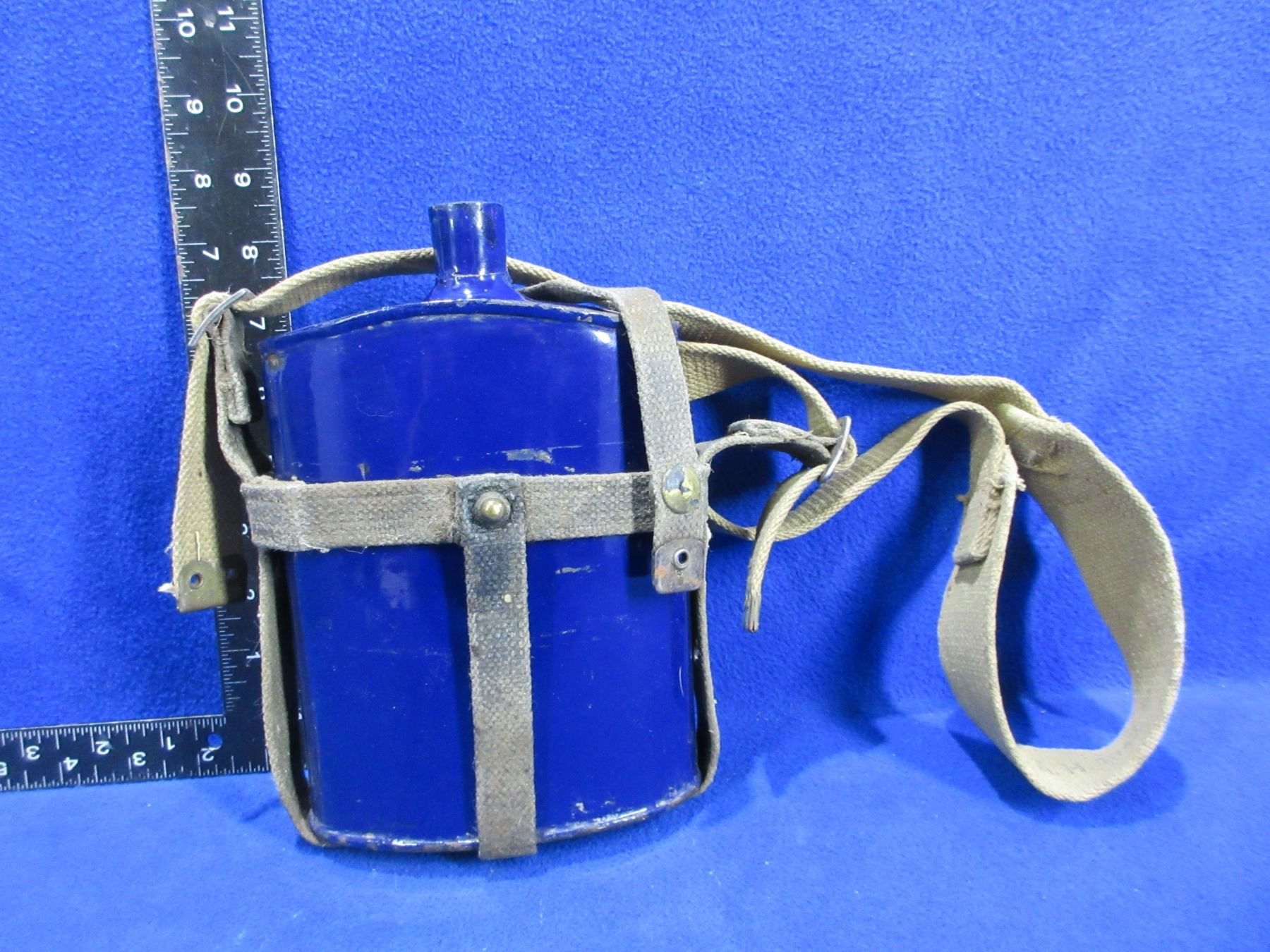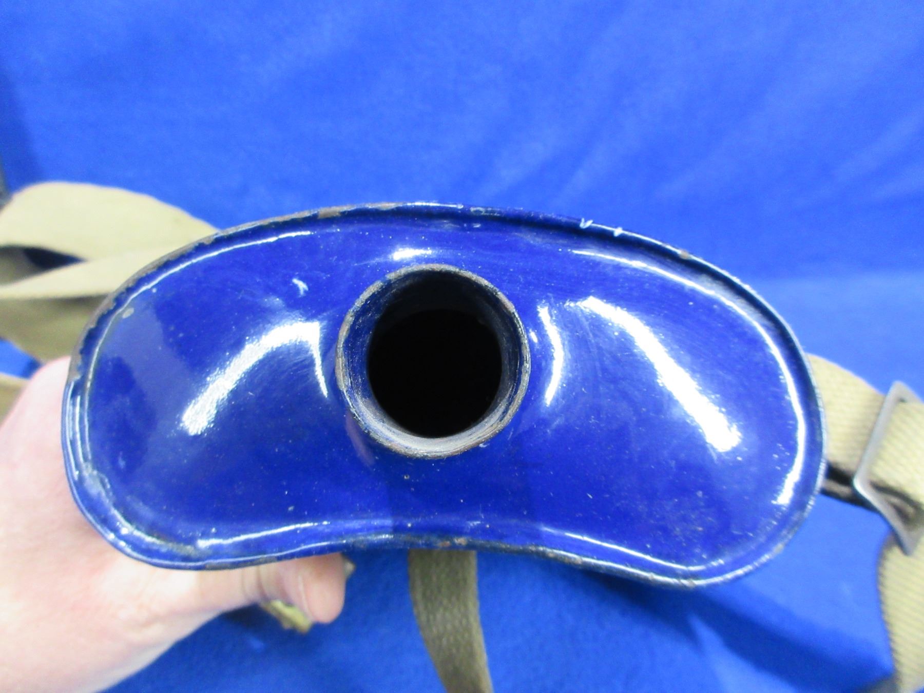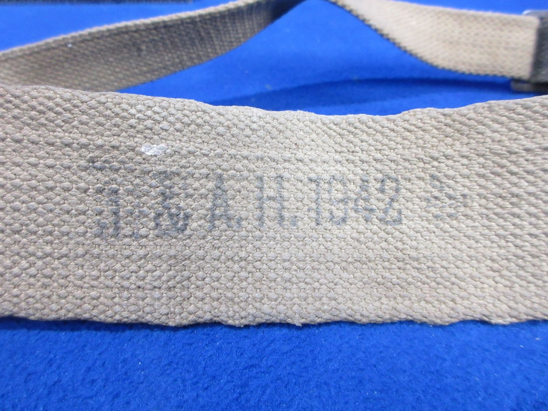 WWI 1914 Pattern Canteen with Harness - Stopper missing and shoulder strap (marked J. & A.H. 1942) has been replaced