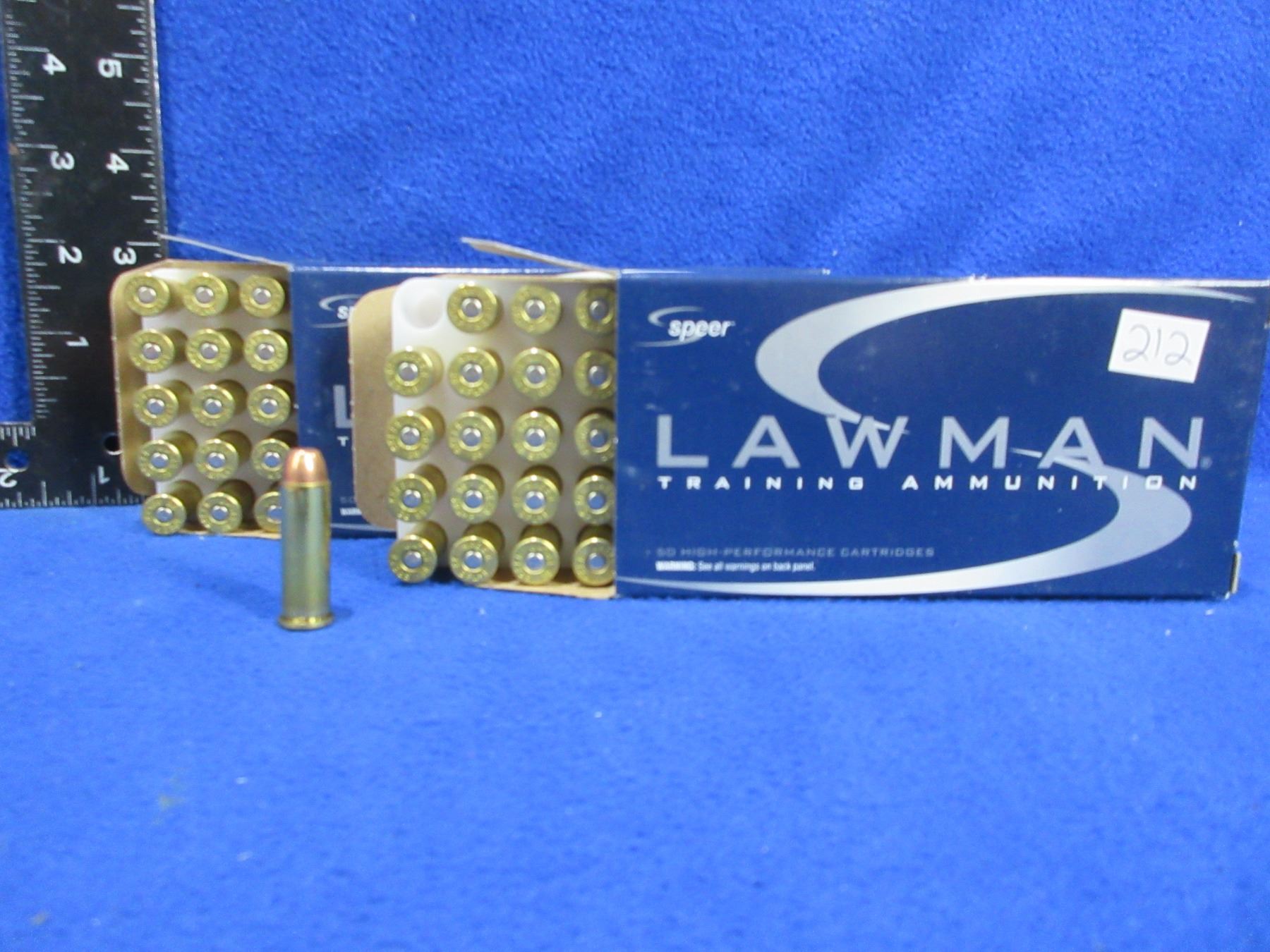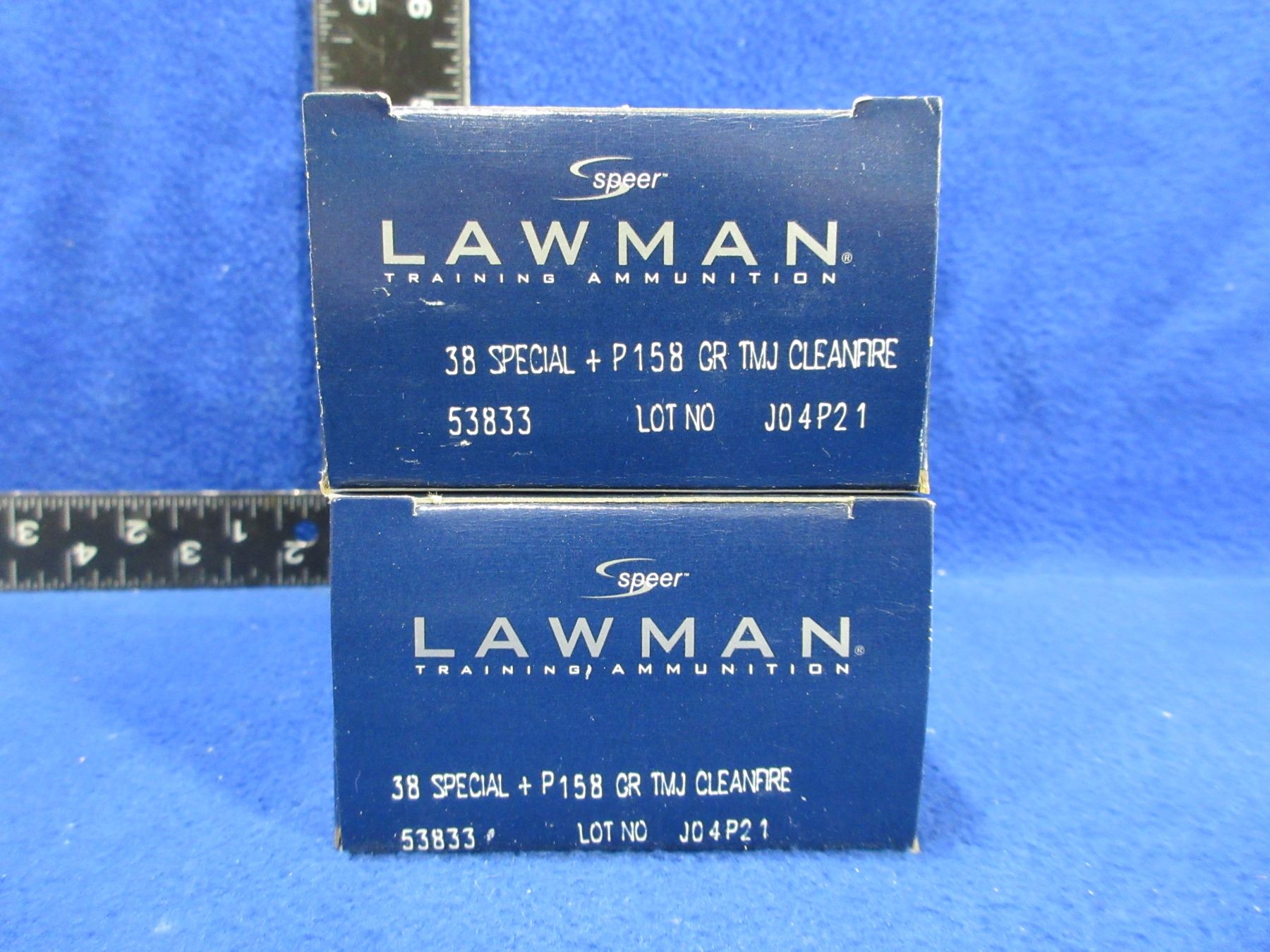 38 Spl +P 158gr TMJ Speer Lawman Training Cartridges - 2 Boxes of 50 - Consignors Note : This ammo runs really well in 357 lever actions - PICK UP ONLY