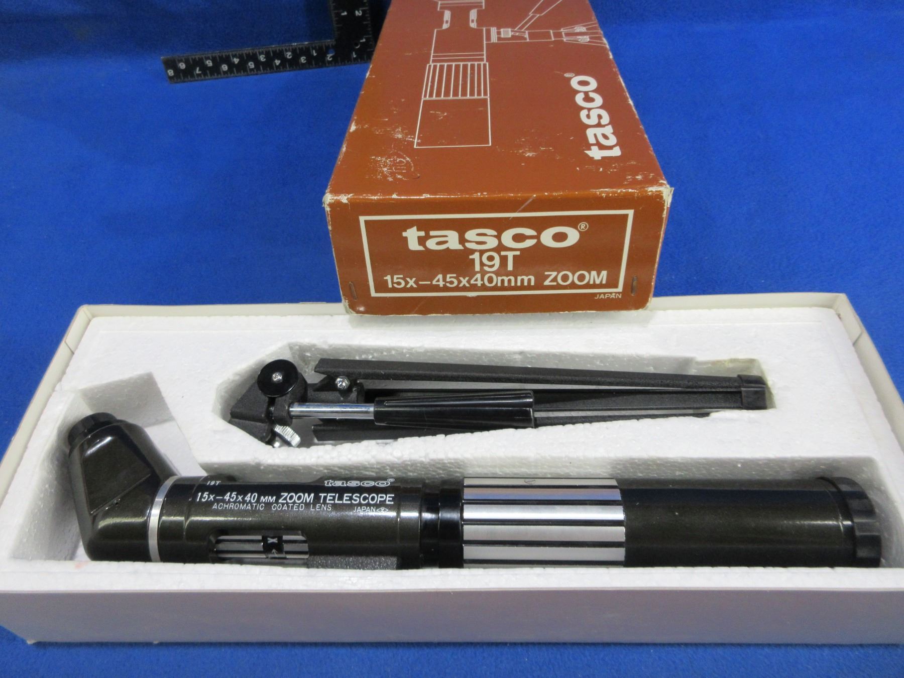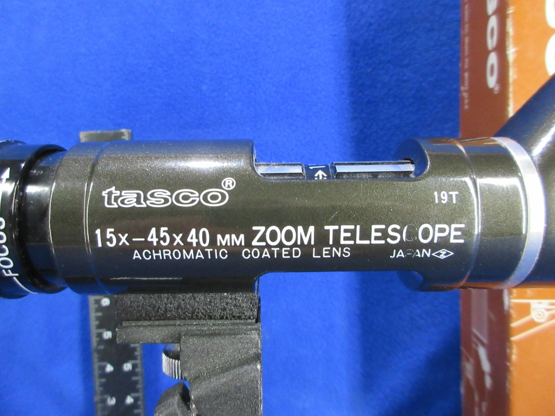 Tasco 19T 15x-45x40mm Zoom Telescope - Appears Clear - Comes with tripod, lens covers and original box