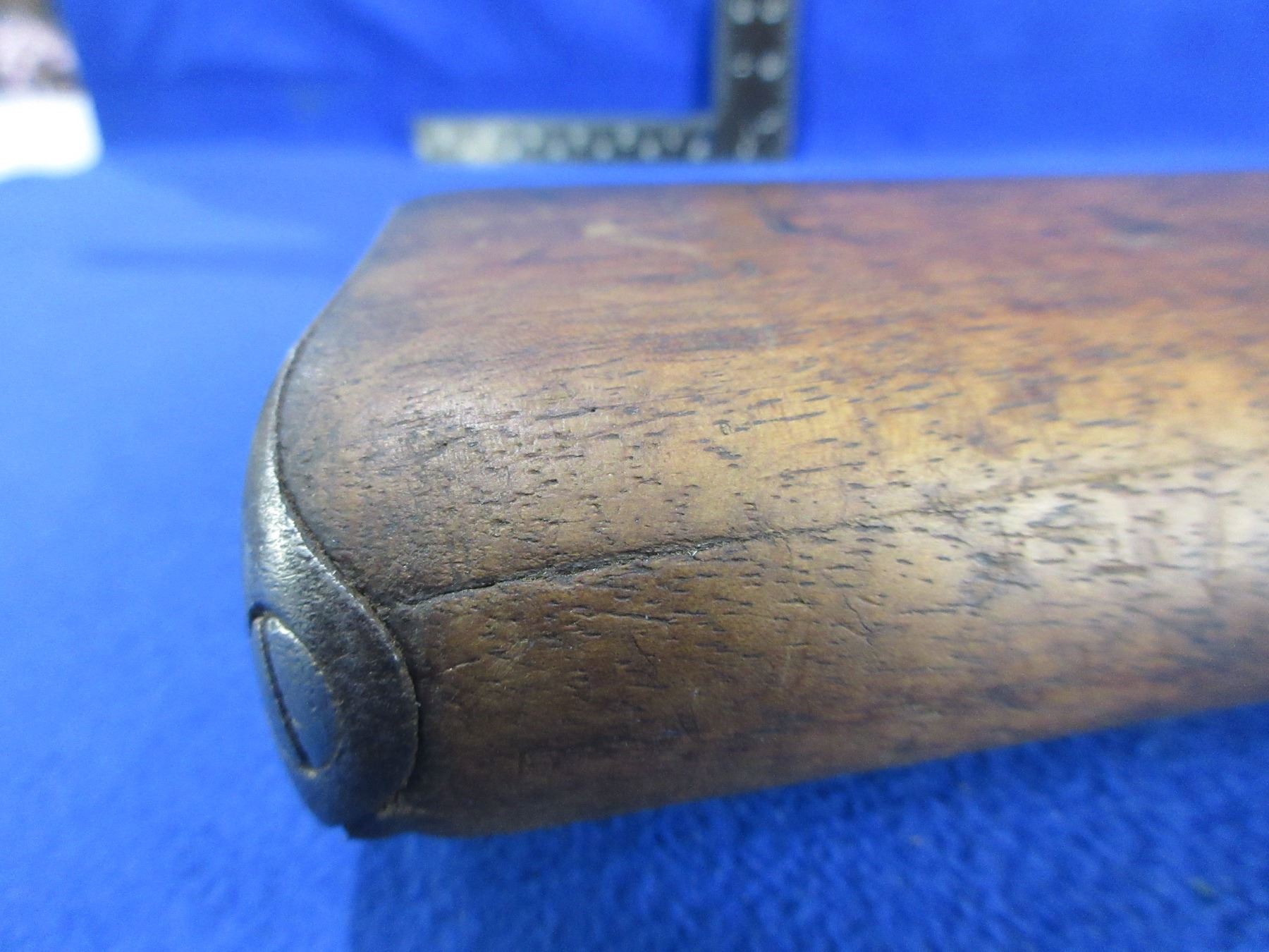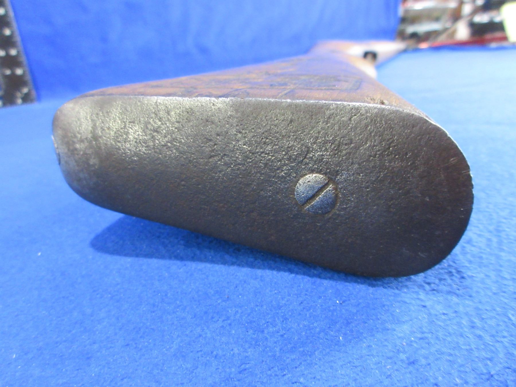 Stock Only - Czech Mauser Japanese Training Wood Stock - Stock is good with a crack on the heel, some drying cracks and many usage marks. Has Japanese markings on the butt. Comes with side swivel, stock disks and metal butt plate