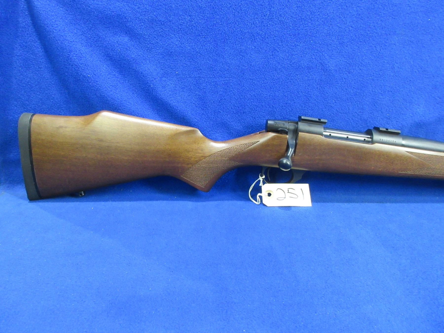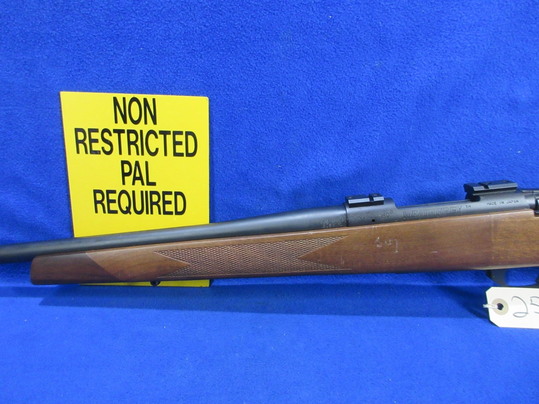 Non-Restricted - Weatherby Vanguard in 308 Win - This bolt action rifle with floorplate magazine is in very nice condition and appears to be in very good working order. Barrel is 24", rifling is very good, bluing is very good, has no sights but is drilled and tapped and has bases, stock is good to very good with some usage marks, rubber pad good, comes with swivels. Ser #VB135204