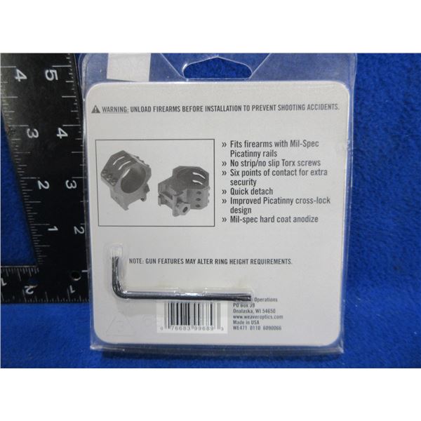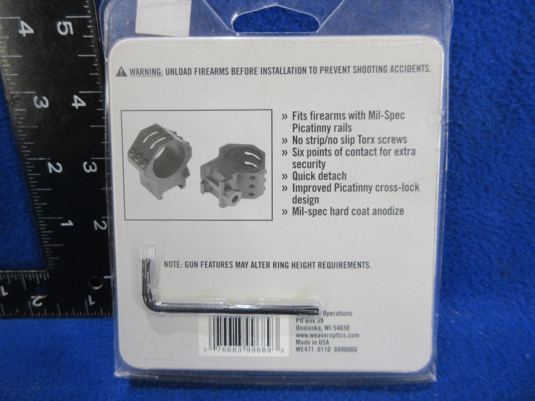 NEW - Weaver 6 Hole 1" Tactical Picatinny High Rings - Black Matte