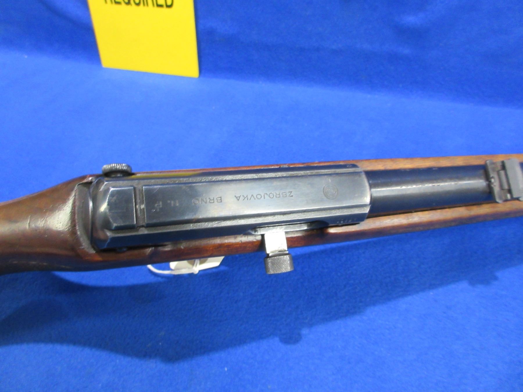 Non-Restricted - BRNO Model 581 in 22 LR - This semi-auto rifle with removable magazine appears to be in good to very good working order. Barrel is 22", rifling is good to very good, bluing is good, has both sights, stock is good with usage marks, butt plate good, comes with swivels. Ser # O1928