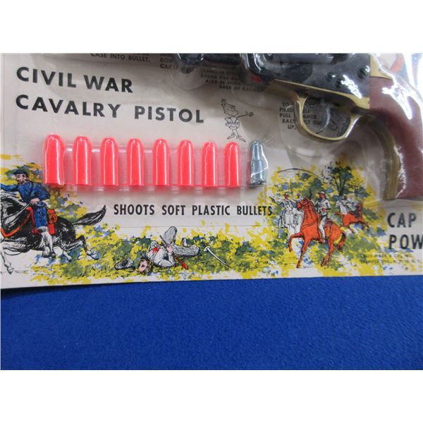 Marx Blue and Gray Civil War Cavalry Pistol Toy Cap Revolver - Circa 1950's. In original packaging