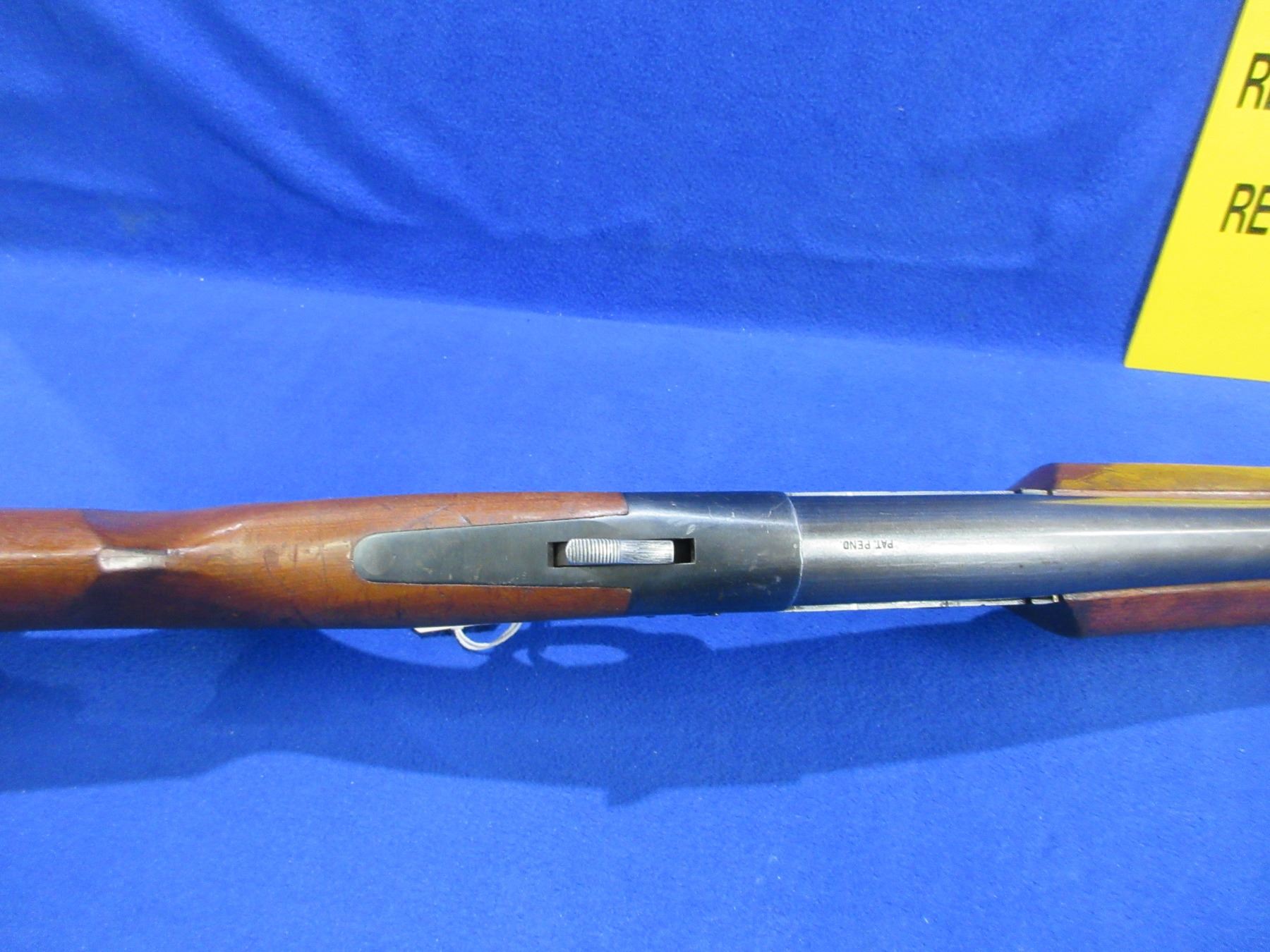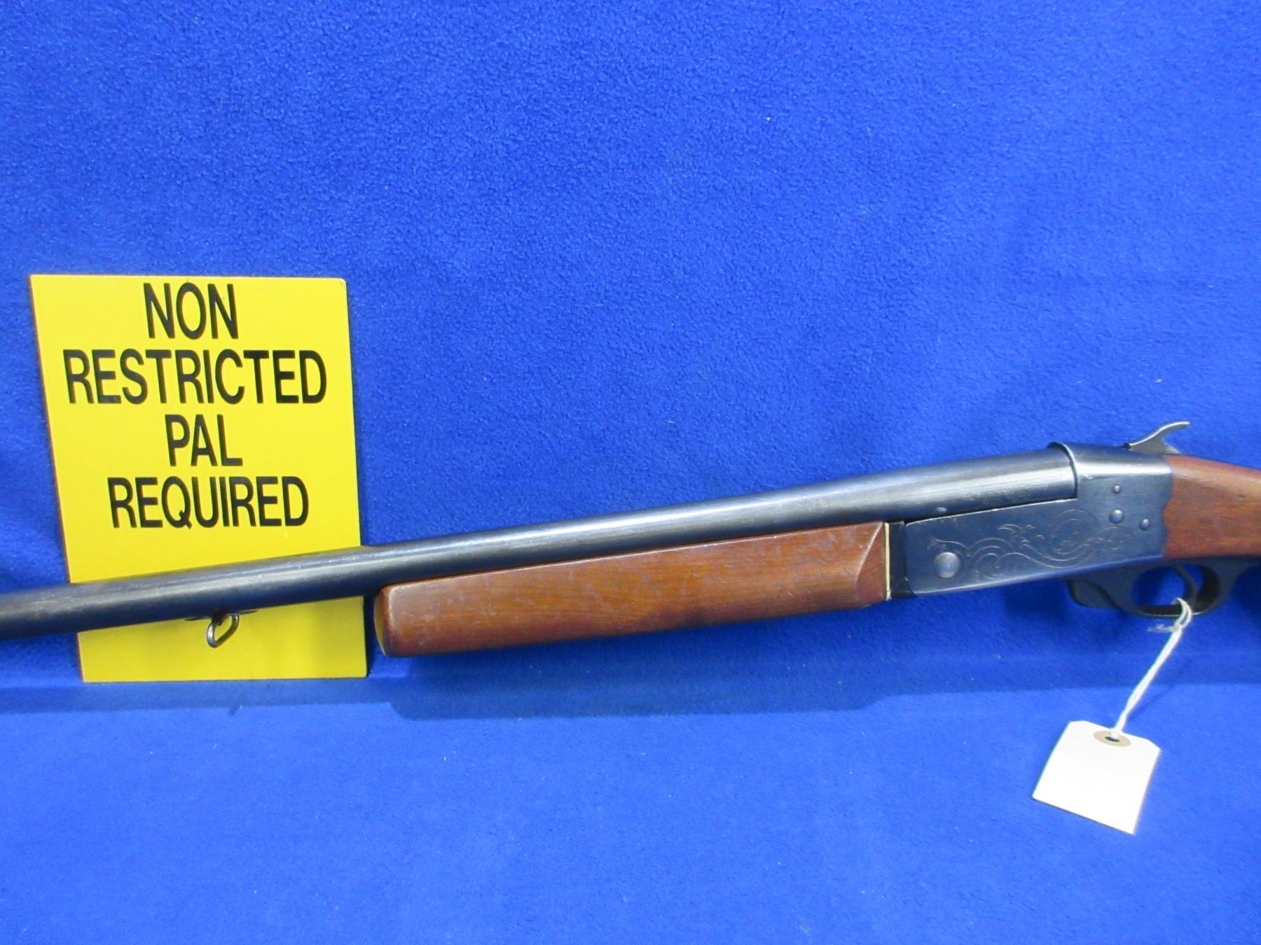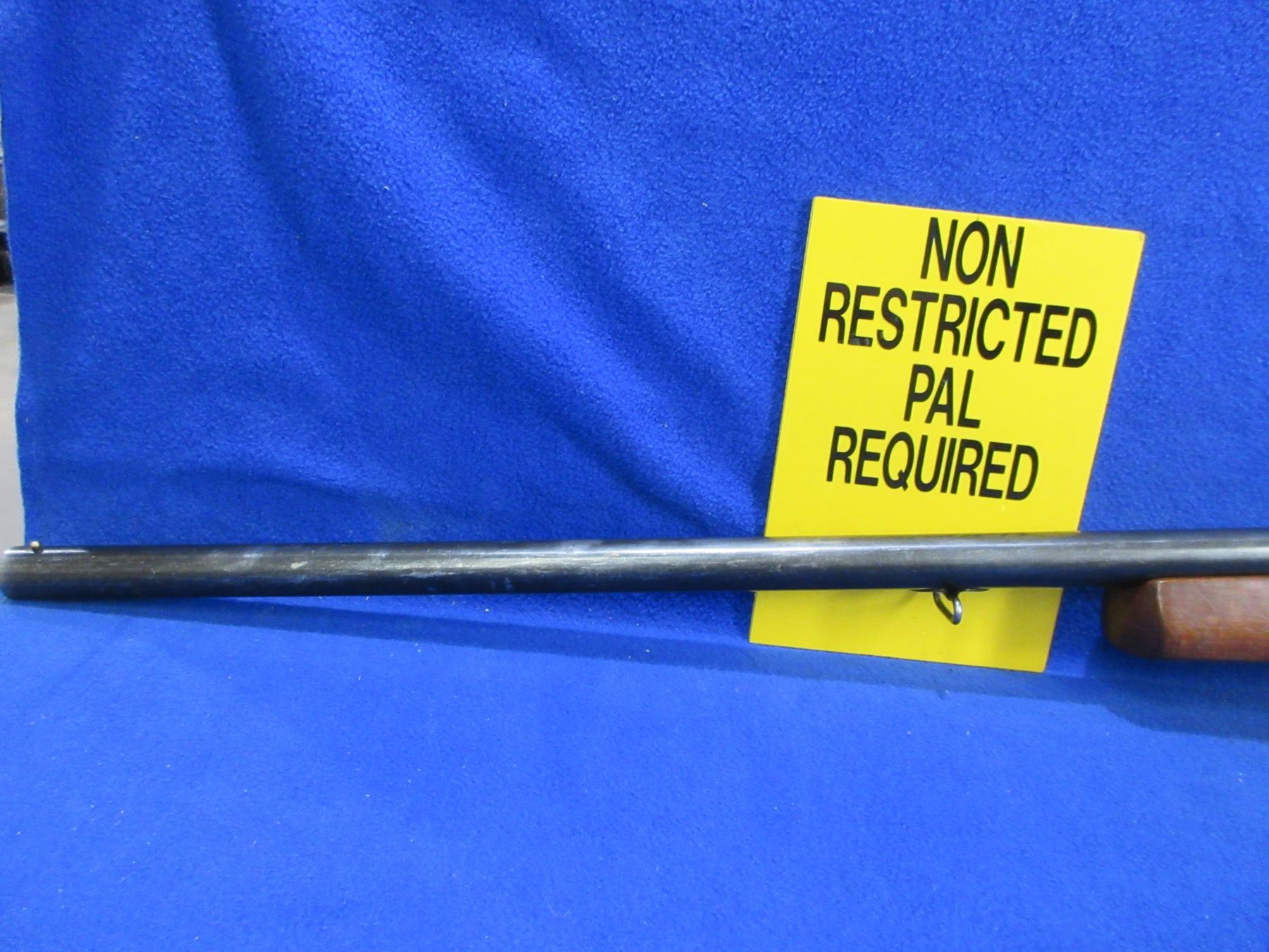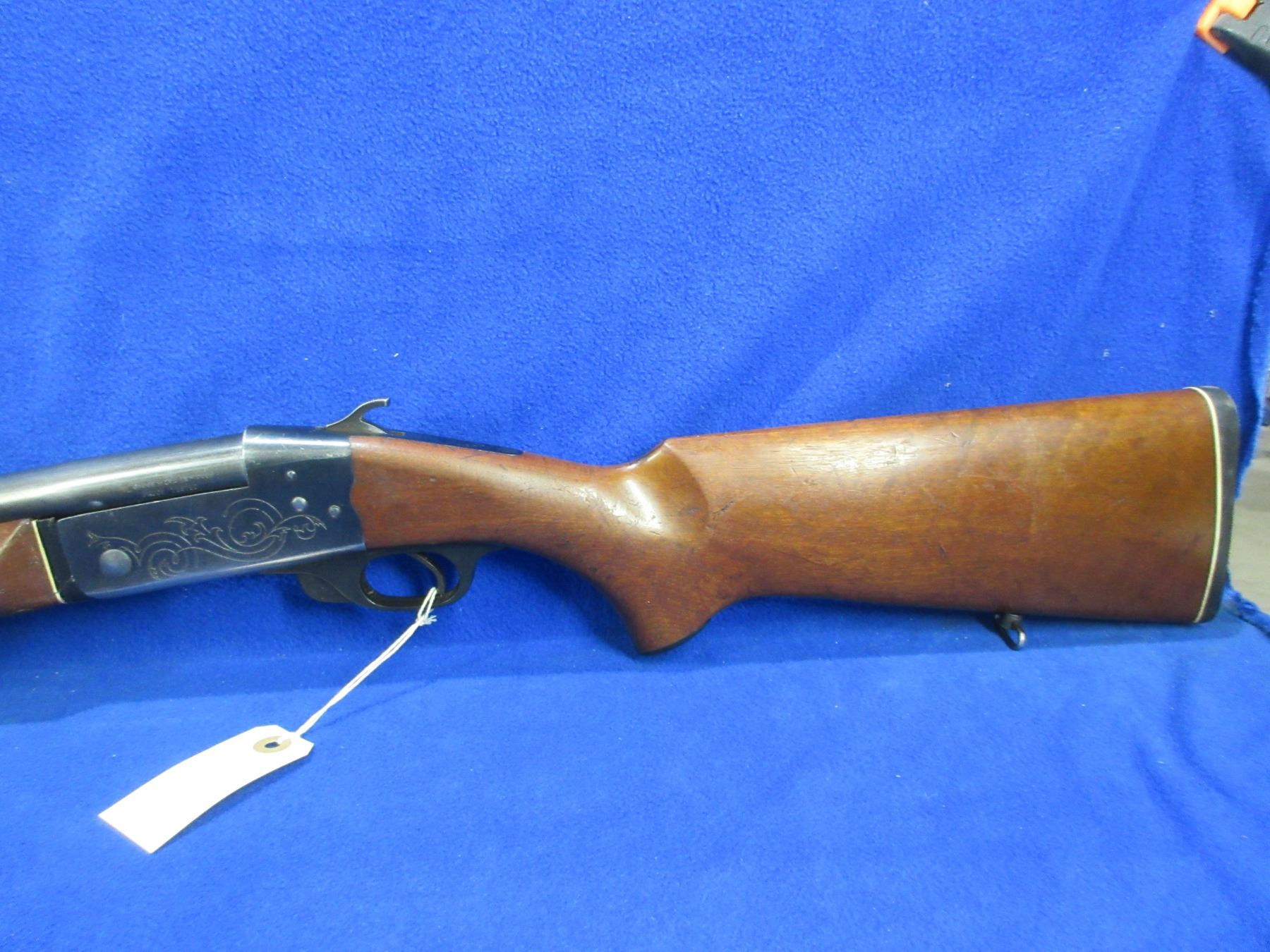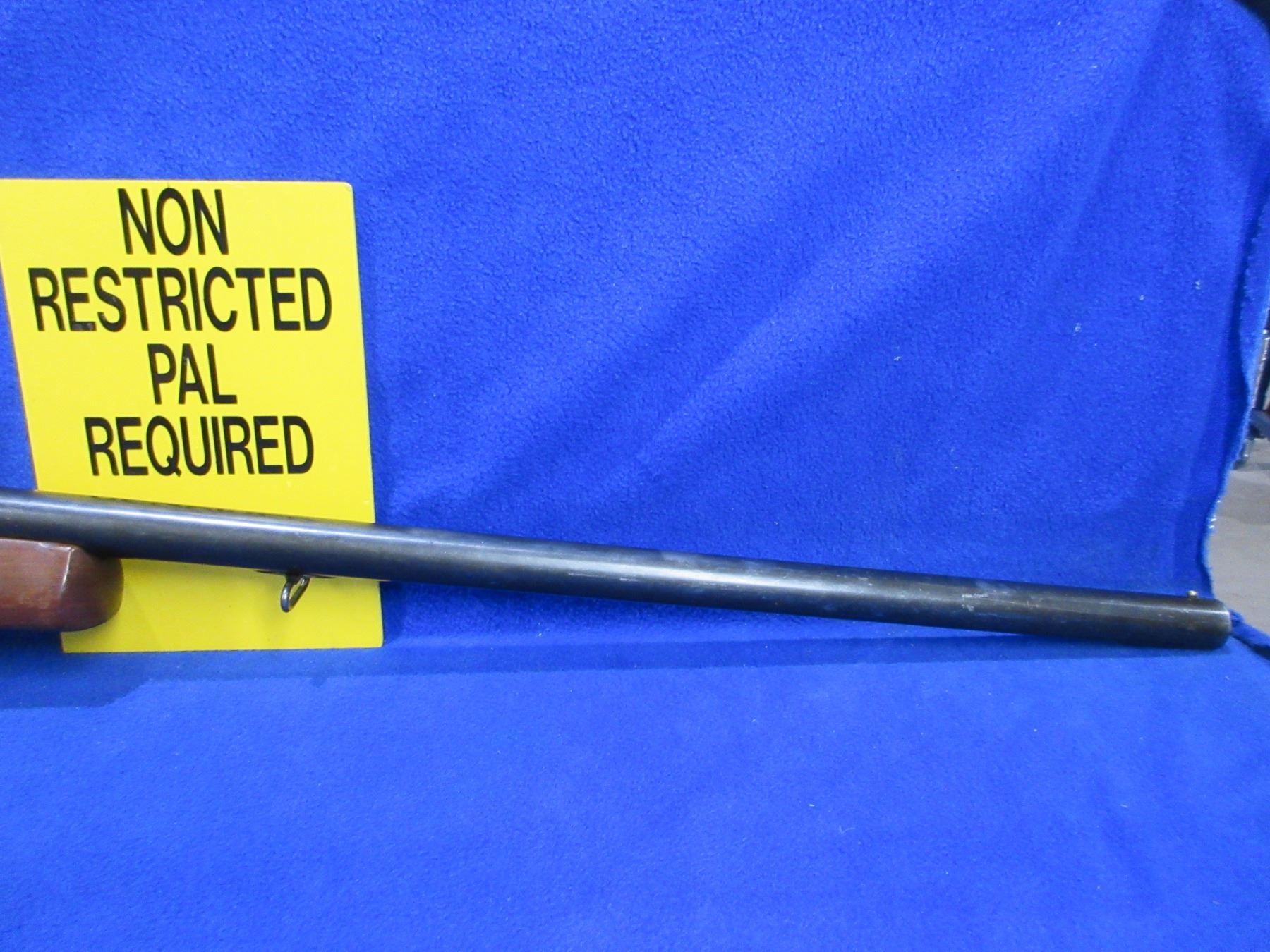 Non-Restricted - CIL Model 402 in 12 Ga. 2 3/4" Full - This tip up single shot shotgun appears to be in good to very good working order, action is tight. Barrel is 30", bore is good to very good, bluing is turning grey, has bead front sight, stock is good with usage marks, forearm is good with usage marks but spacer has a crack repair, butt plate good, comes with swivels. Ser # 271667