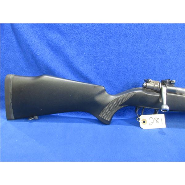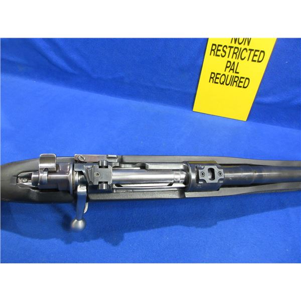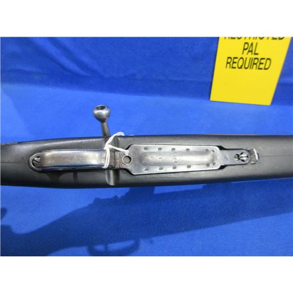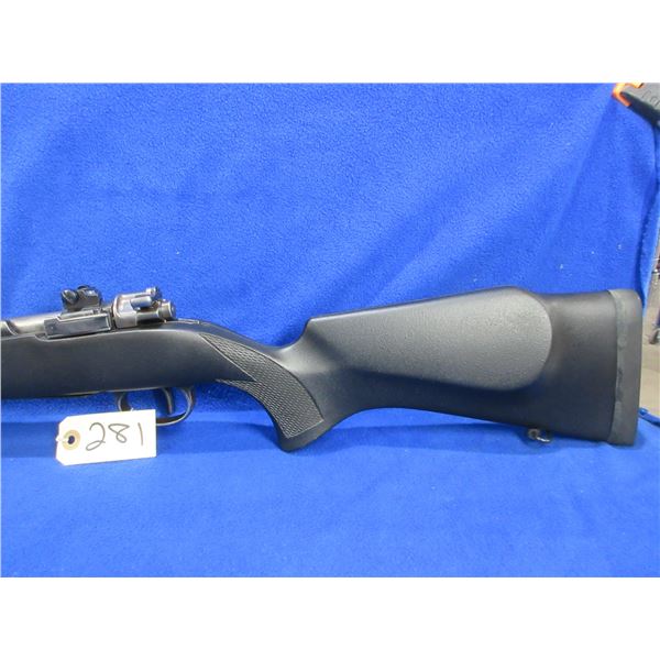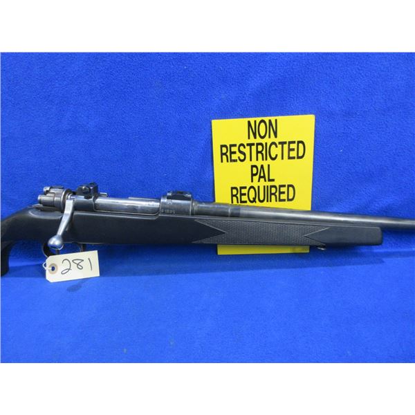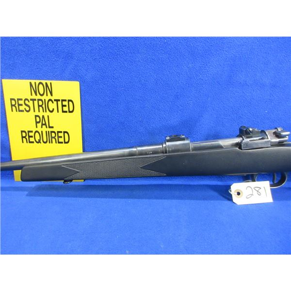 Non-Restricted - Mauser in 308 Win - This bolt action rifle with floorplate magazine appears to be in good to very good working order. Barrel is 23 1/2", rifling is good to very good, bluing is good but turning grey, sights are missing but is drilled and tapped and has bases, synthetic stock is good to very good, rubber recoil pad good, comes with swivels. Ser #S1201