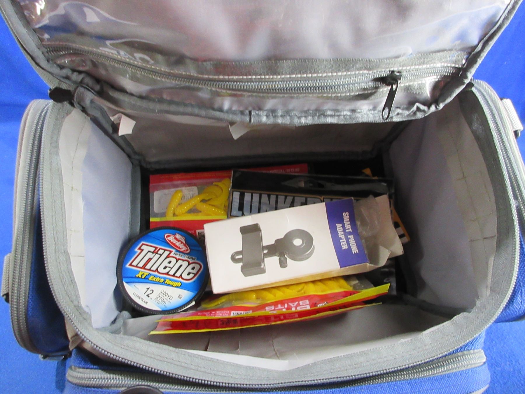 Plano Soft Tackle Box with Tackle - Fishing Line, Baits, Etc. - Shoulder strap missing