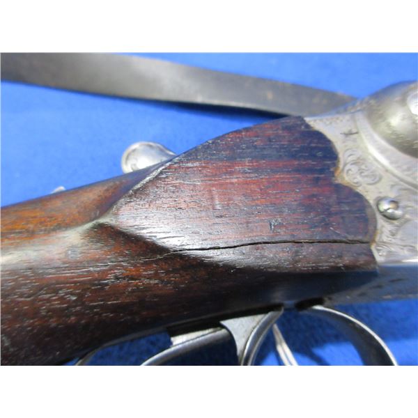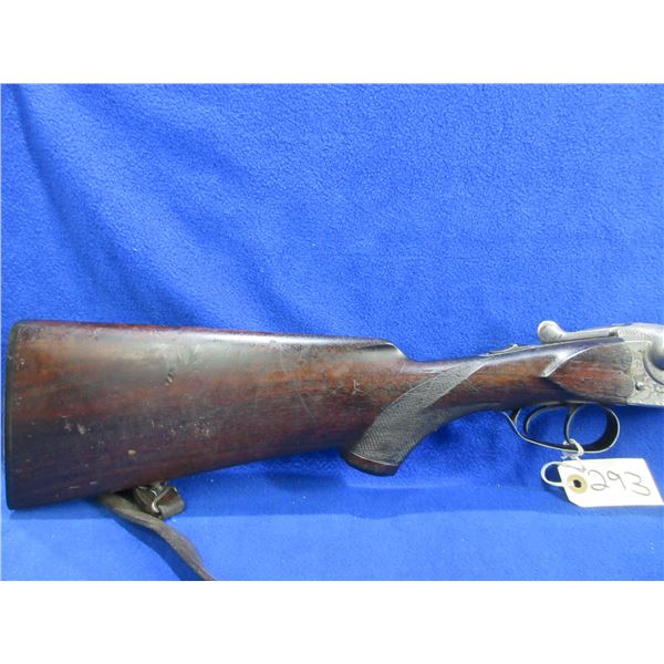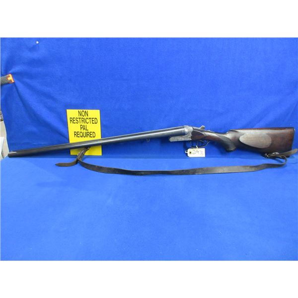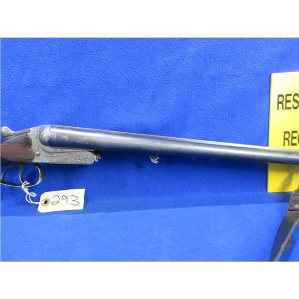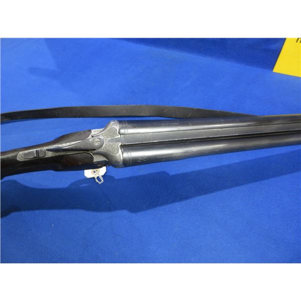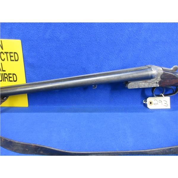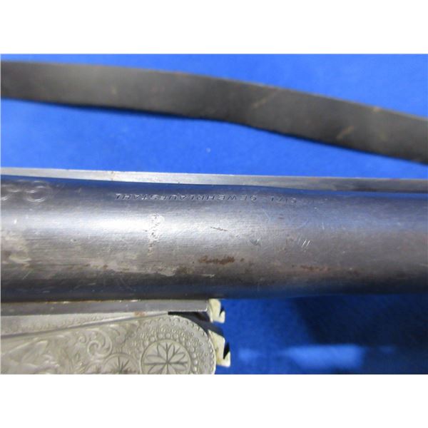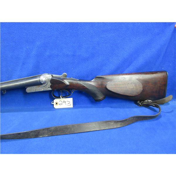 Non-Restricted - Simson Suhl SxS in 12 Ga. 2 3/4" - This tip up SXS shotgun is in non working order as forearm is missing and stock is cracked, action is tight. Barrels are 28", bores are good but right barrel is ringed approx 3" from action, bluing is fair to good with light scratches and wear spots, has bead front sight, stock is cracked on right side of action, forearm is missing, butt plate, comes with swivels and sling. Ser # 792529