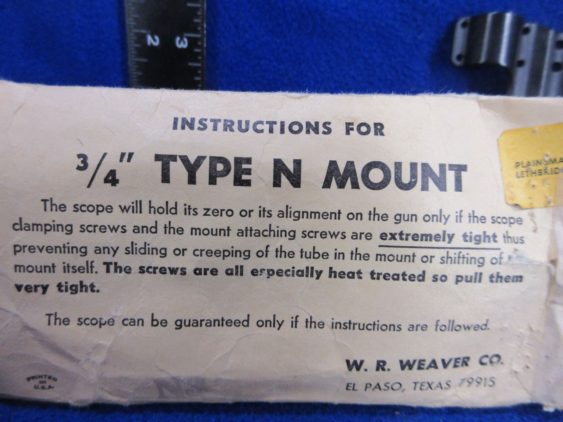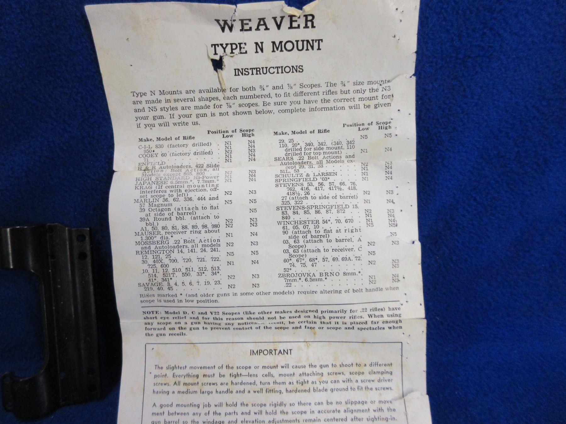 Lot 299 Weaver 3/4" Type N Side Mount with Screws & Instructions
