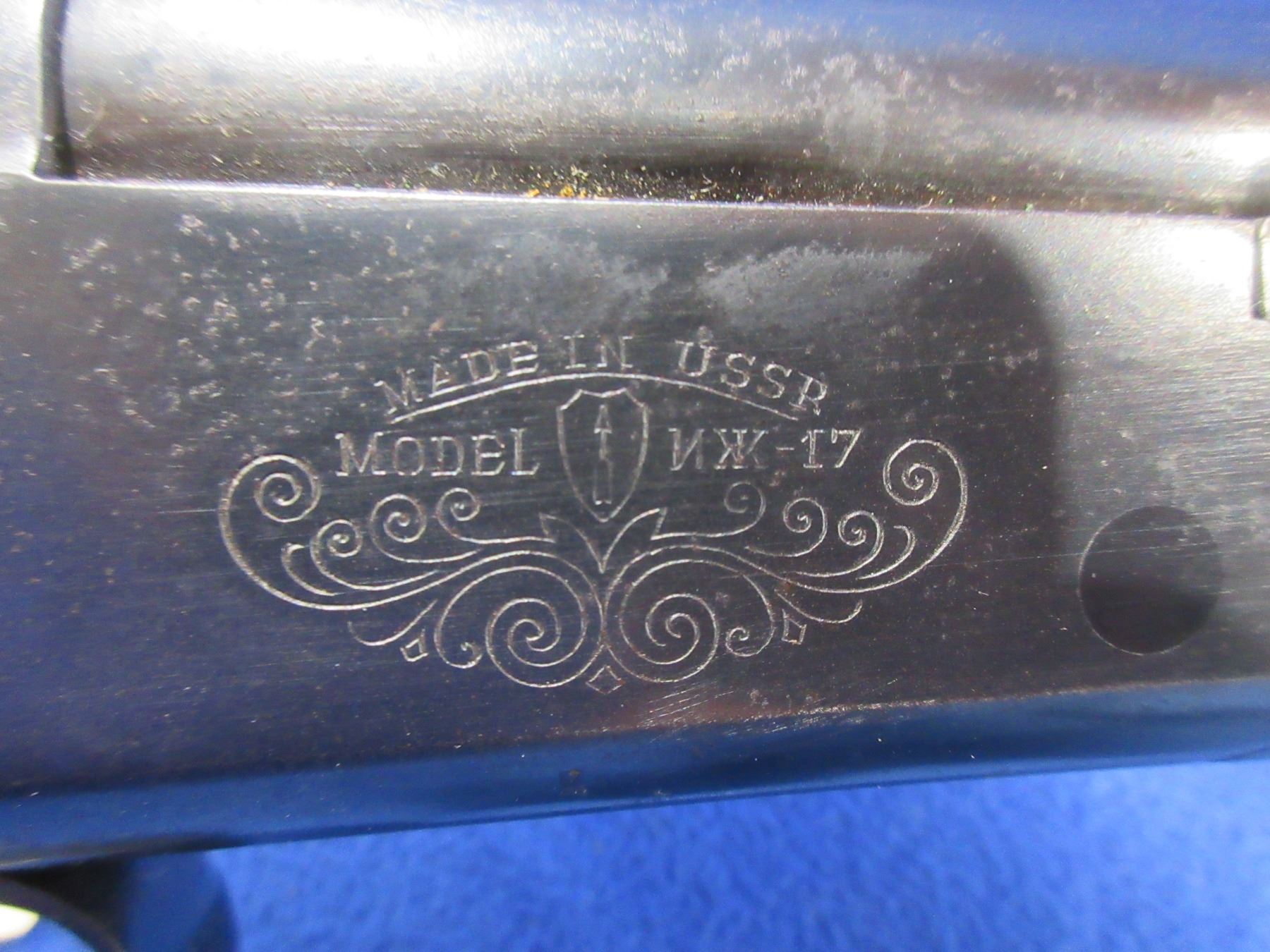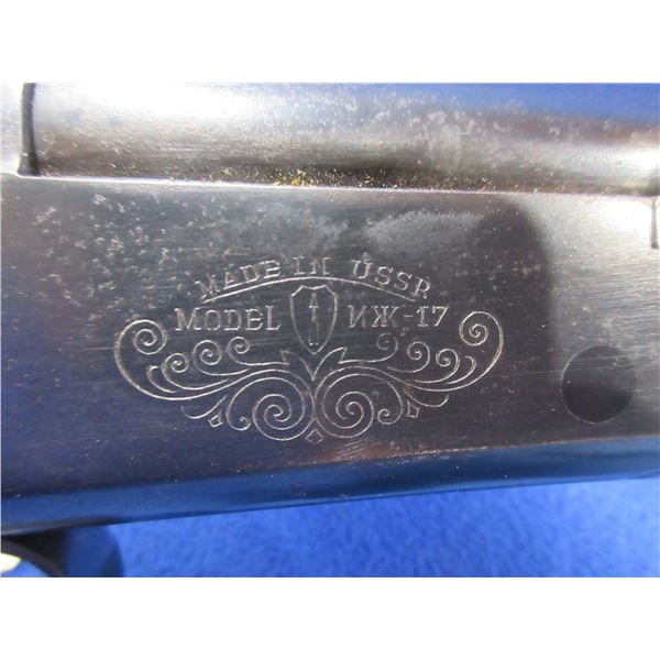 Non-Restricted - Baikal Model NK-17 in 12 Ga. 2 3/4" - Made in USSR in 1966. This tip up single shot shotgun appears to be in good to very good working order, action is tight. Barrel is 30", bore is good to very good, bluing is fair with patches, has bead front sight, stock is good to very good with usage marks, forearm is good to very good, Baikal butt plate good, comes with swivels. Ser # A32810
