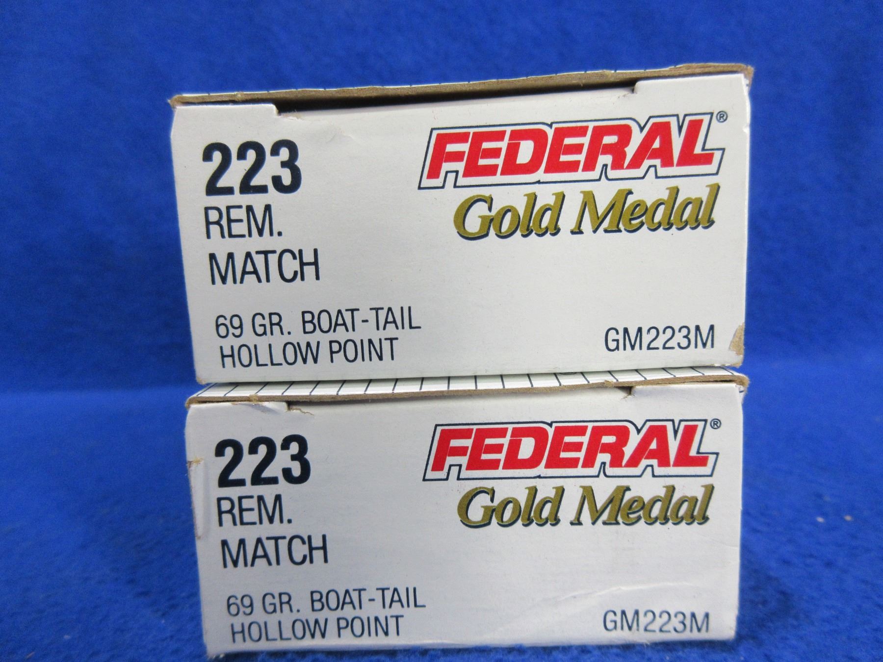223 Rem. Match 69gr BT HP Federal Gold Medal Cartridges - 2 Boxes of 20 - PICK UP ONLY