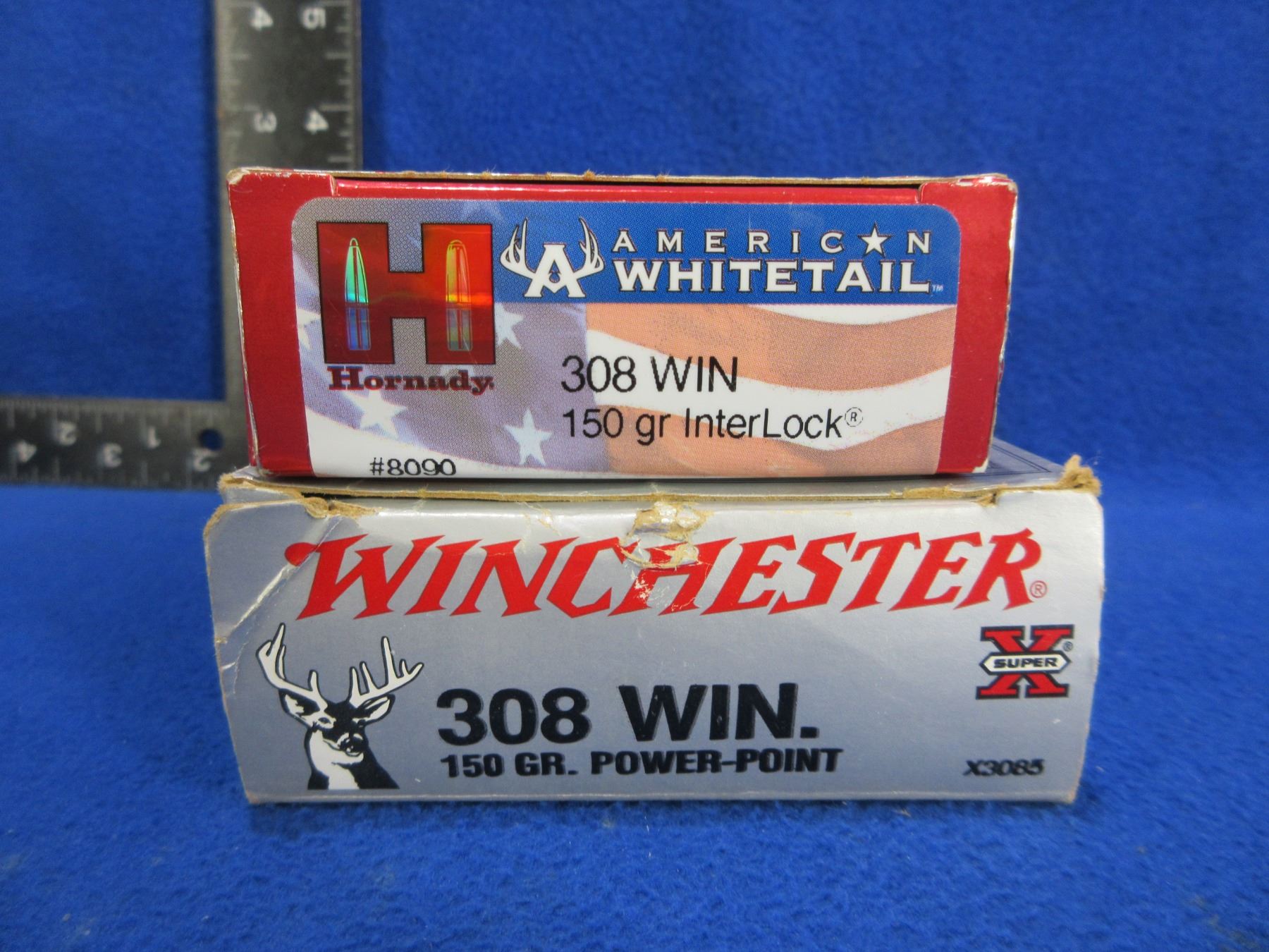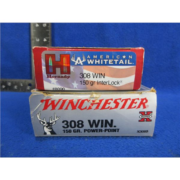 308 Win. Hornady and Winchester Cartridges - Box of 20 (Hornady 150gr Interlock), Box of 11 (Winchester 150gr PP) - PICK UP ONLY