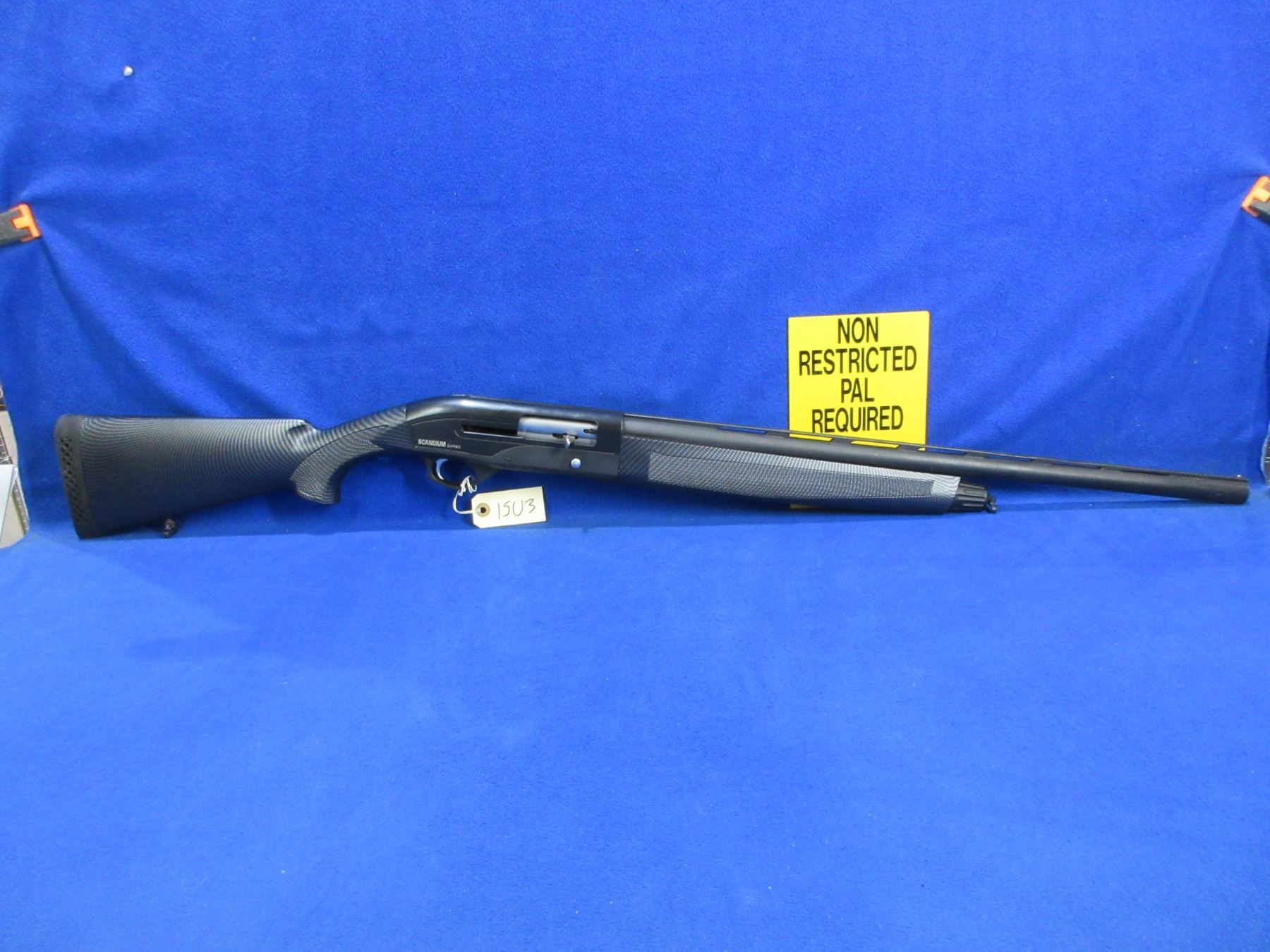 Non-Restricted - Armsan Model A612 in 12 Ga. 3" - This semi-auto shotgun with removable choke appears to be in good to very good working order. Vent rib barrel is 24"(three vents are dented), bore is good to very good, bluing is good but has some very light rust and pitting, has bead front sight, Carbon fiber finish coated synthetic stock and forearm are very good, rubber recoil pad good, comes with swivels. Ser #08A5343