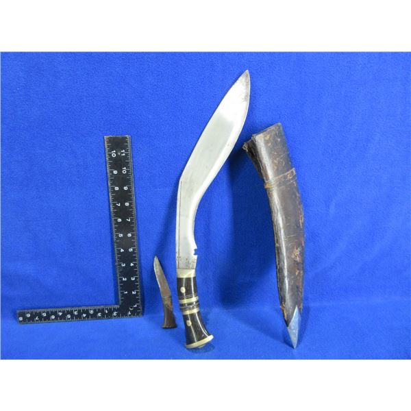 Kukri Knife 2 Knife Set (1 Small Knife Missing) with Sheath - 12" Blade - Blade has some light pitting and damage, pommel is loose