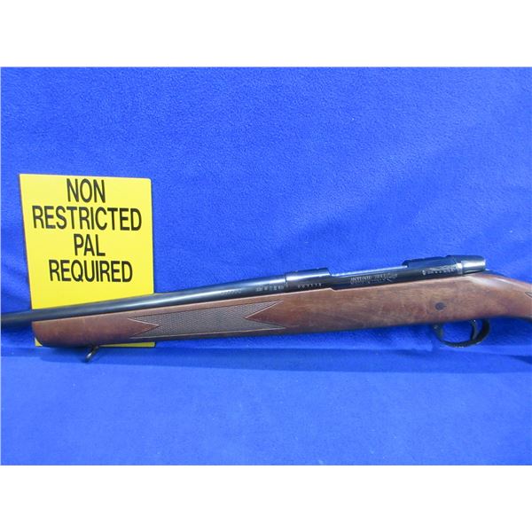 Non-Restricted - Antonio Zoli AZ1900 in 308 Win - This bolt action rifle with floorplate magazine appears to be in good to very good working order. Barrel is 21", rifling is good to very good, bluing is good with light scratches, sights are missing but is drilled and tapped, stock has hairline crack repair on right side of action behind bolt and usage marks, butt plate good, comes with swivels, both swivels have glue stains on the stock. Ser #OO7113