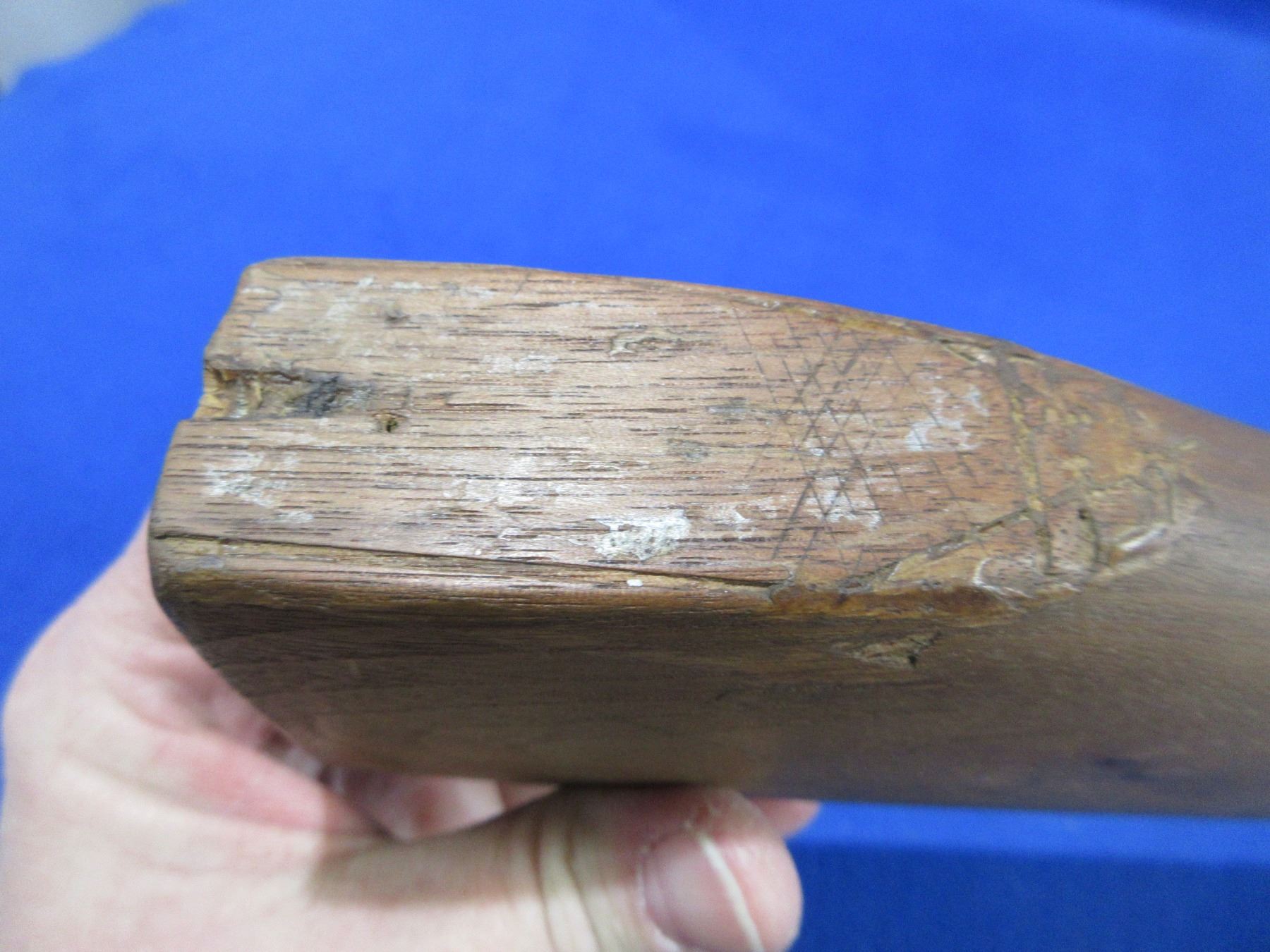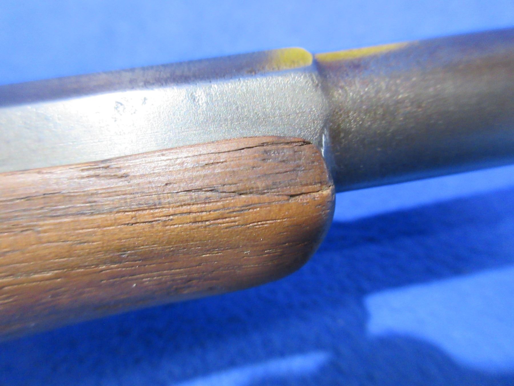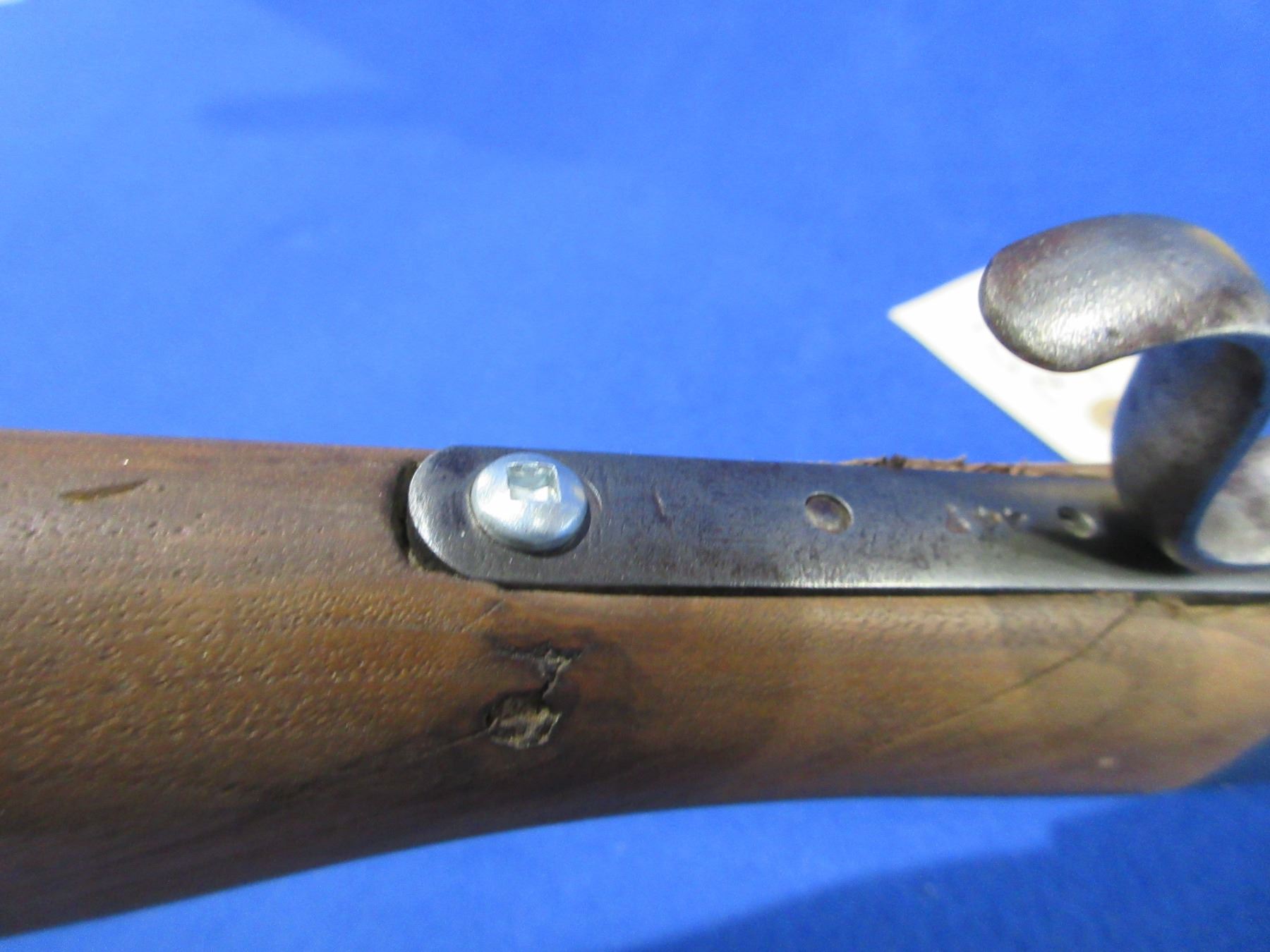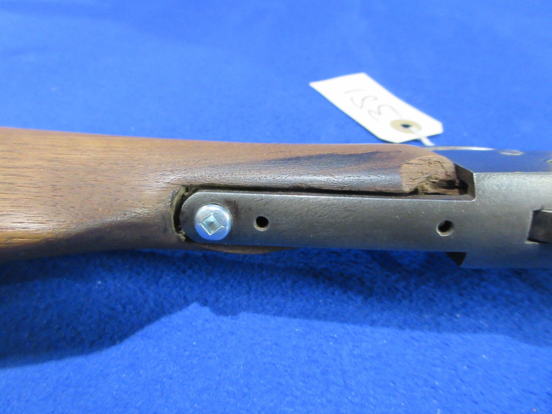 Non-Restricted - J. Stevens Model Favorite in 32 Long RF - This single shot falling block rifle appears to be in good working order but should not be fired as stock is broken. Barrel is 24", rifling is poor to fair, bluing is turning grey and barrel has some pitting, rear sight ramp is not attached and semi buckhorn rear sight has incorrect screw, front sight is incorrect/modified, stock is broken at the wrist, has a large chip at the toe and has incorrect screws in both rear tangs, forearm has a small crack at front on right, butt plate missing. Ser # P447