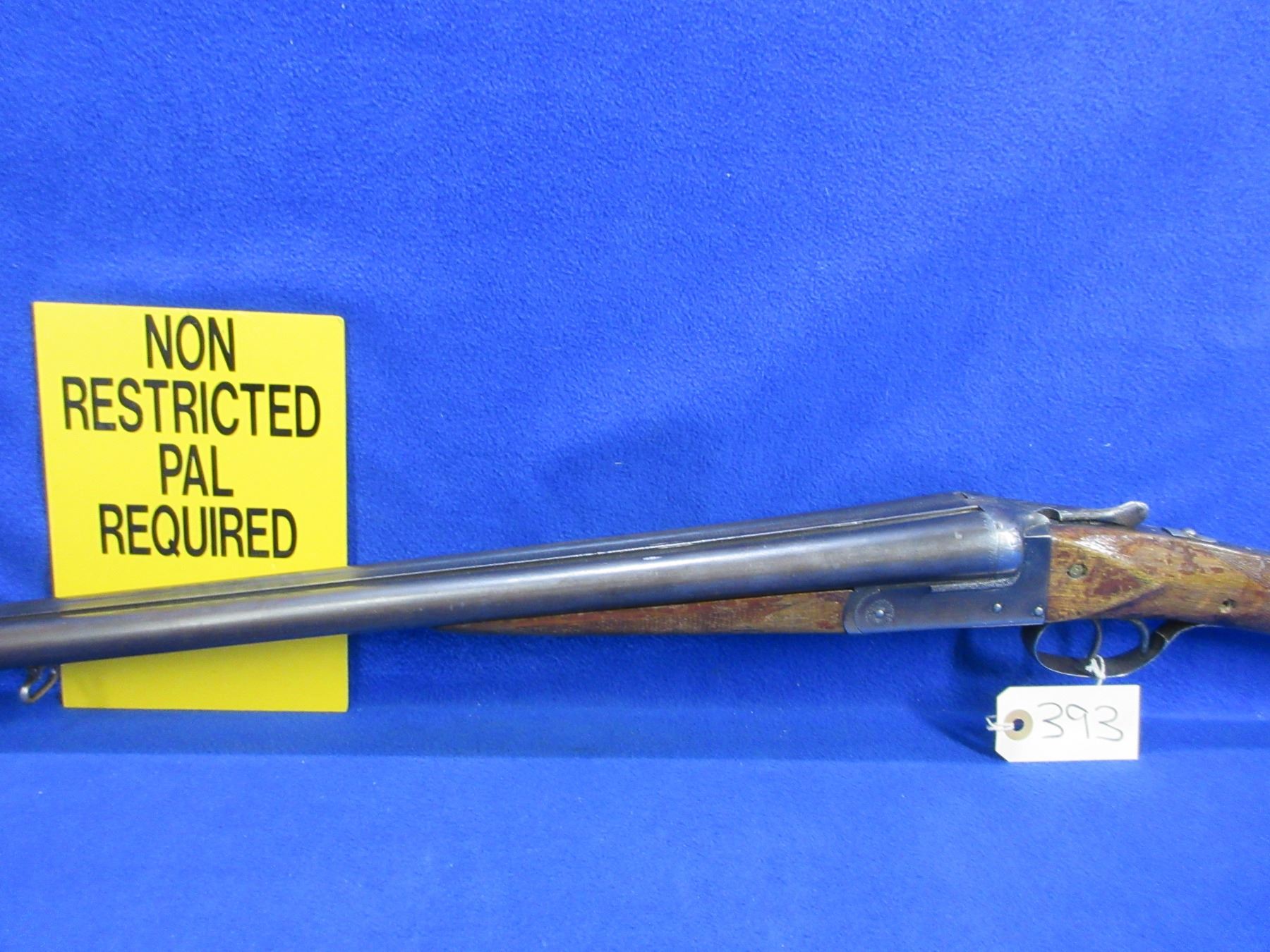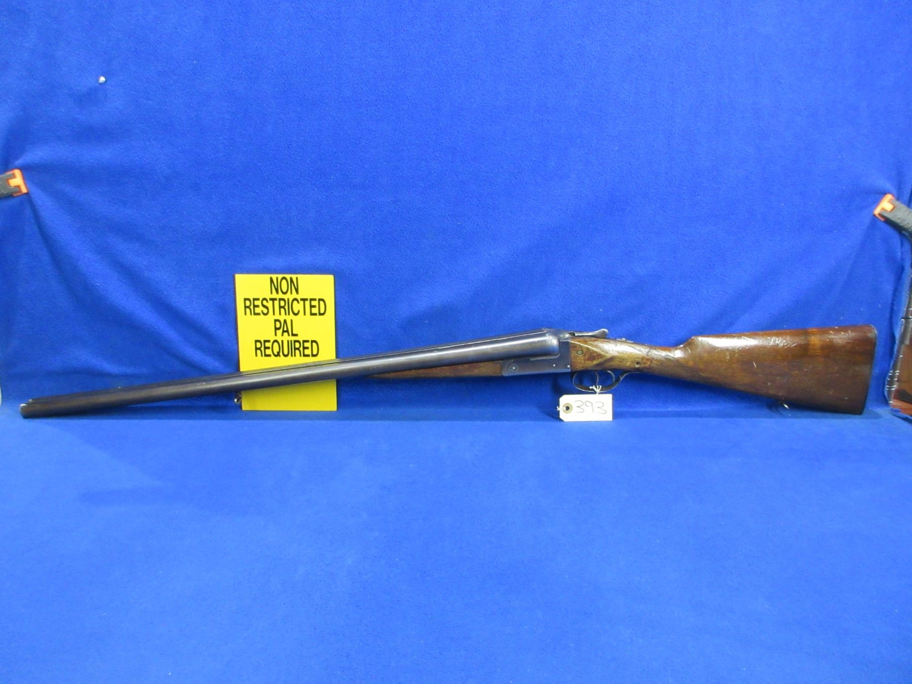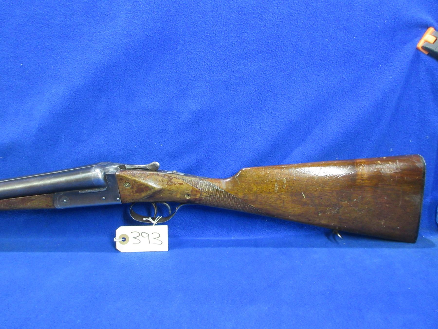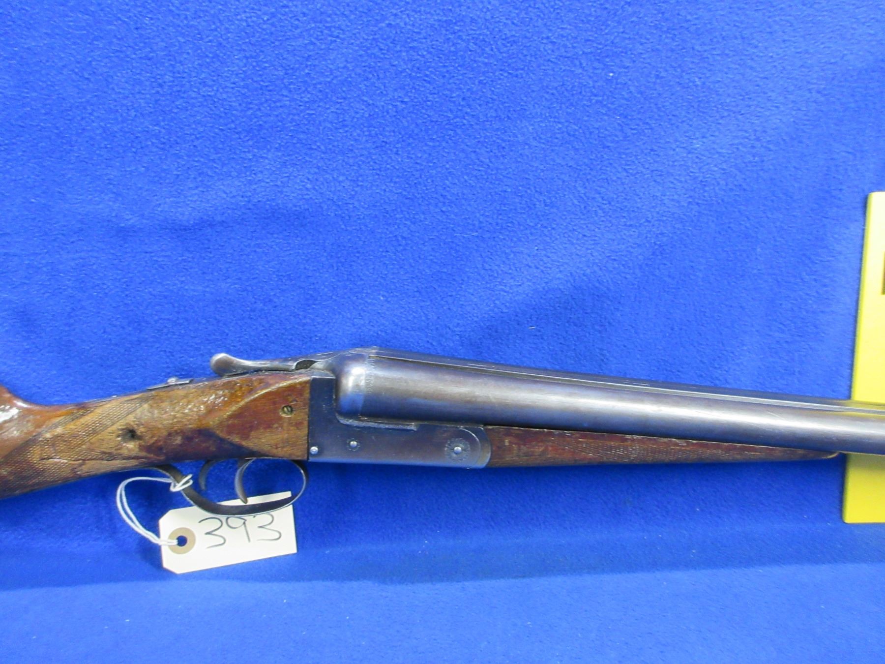 Non-Restricted - Aramberri Eibar SxS in 12 Ga. 2 3/4" - This tip up SXS shotgun appears to be in working order but should not be fired as stock is poorly repaired, action is tight. Barrels are 27 1/2", bores are good but both barrels have very small dents approx 12" from muzzle, bluing is turning brown with some light pitting, has bead front sight, stock is poorly repared in the wrist area and has been varnished or lacquered, forearm is good for age and varnished or lacquered, butt plate, comes with swivels. Ser # 22172