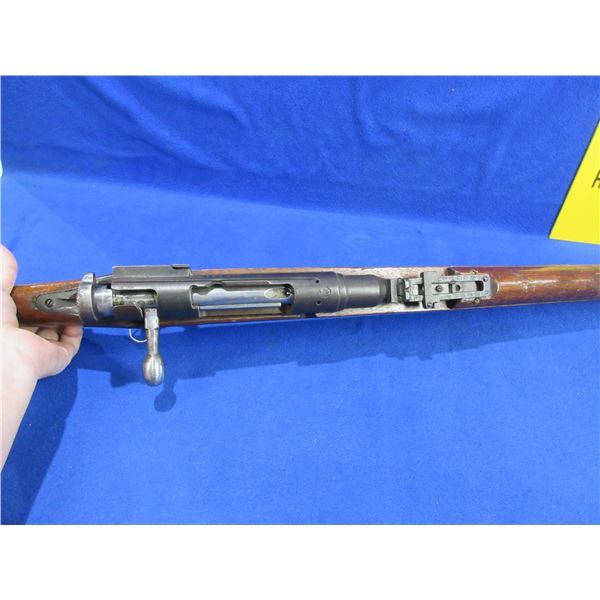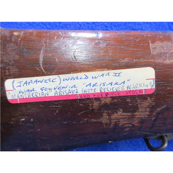 Non-Restricted - Japanese Arisaka in Appears to be 6.5x50mm - This bolt action rifle with floorplate magazine is in non working order as the bolt cap is not working correctly and bolt retainer is not working. Barrel is 30", rifling is poor, bluing is good to very good for age, has both sights, full wood stock is good with usage marks, metal butt plate good, comes with swivels. Ser #0431
