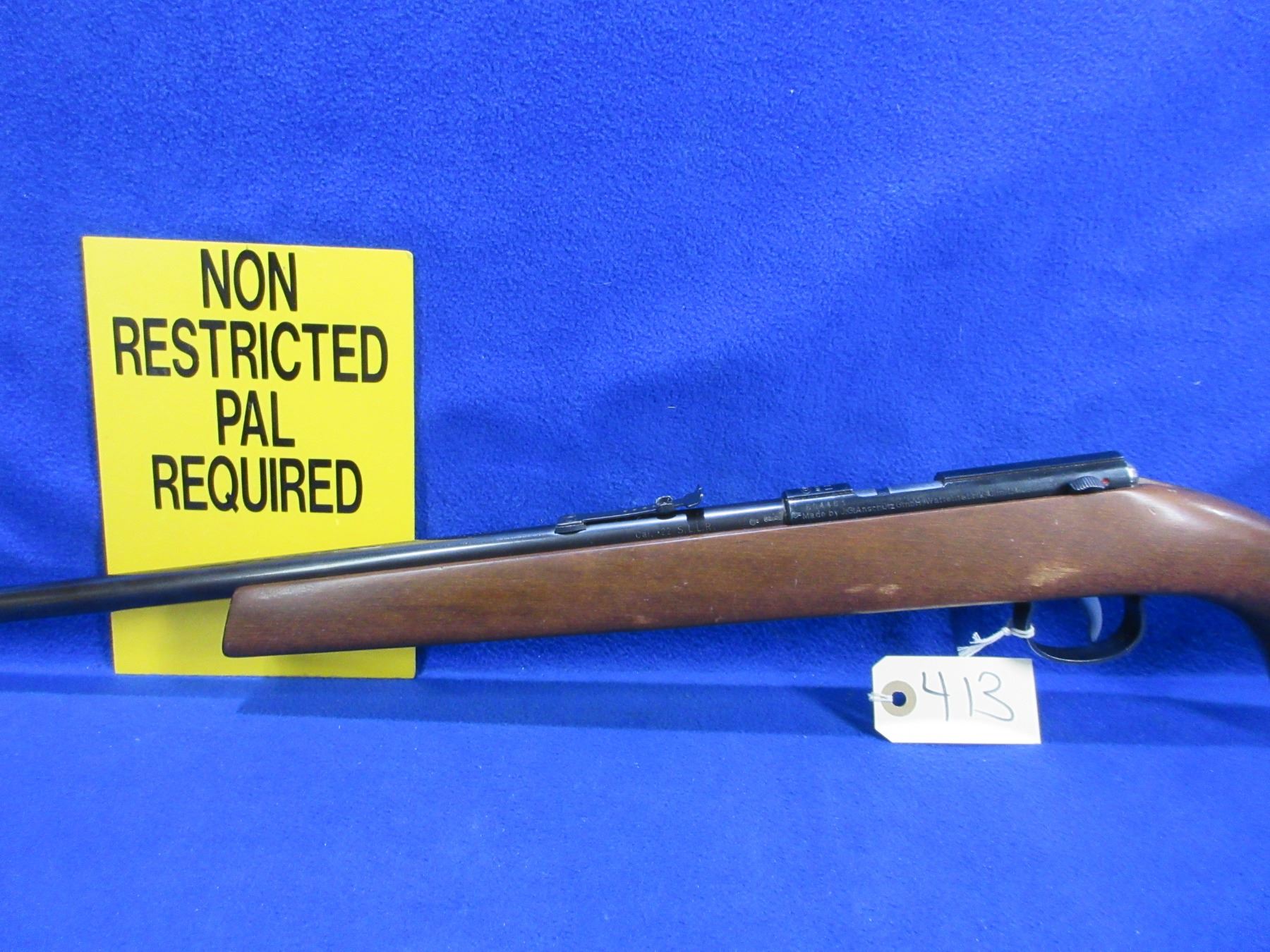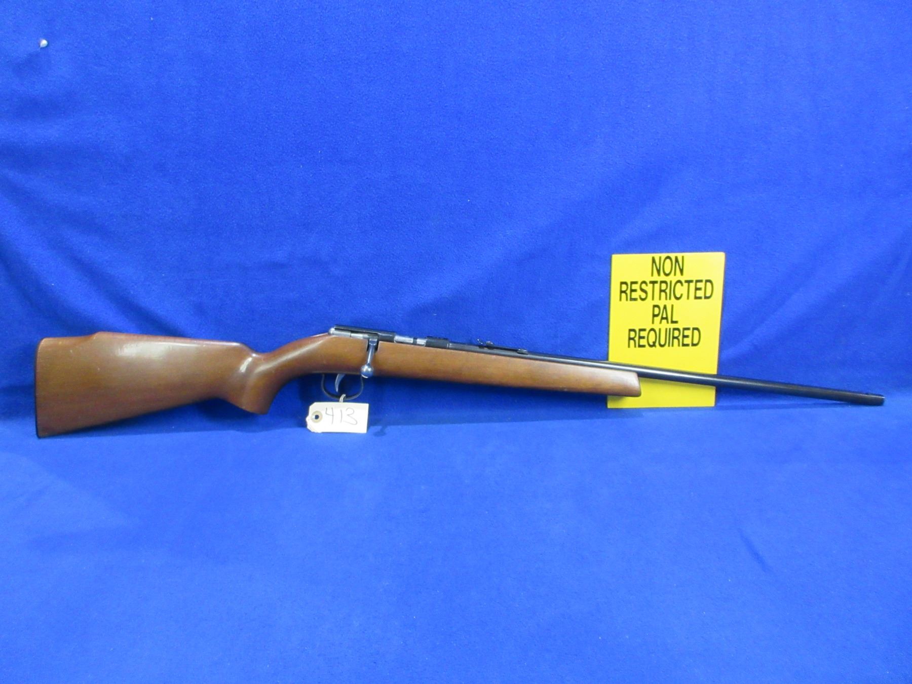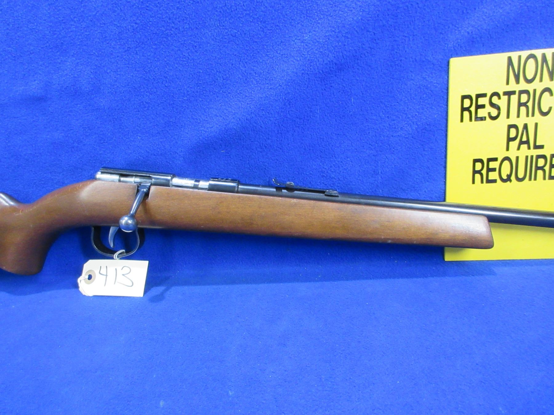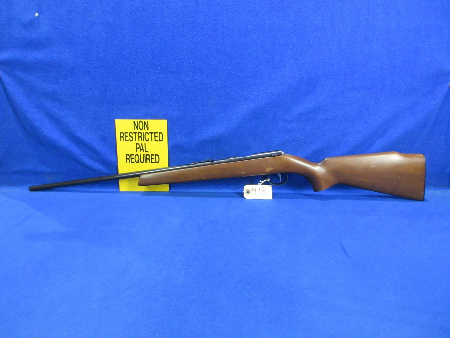 Non-Restricted - Anschutz CIL Model 121 in 22 S/L/LR - This single shot bolt action rifle appears to be in good to very good working order. Barrel is 21 3/4", rifling is good to very good, bluing is good to very good, front sight missing, has rear sight and integral 22 base, stock is good to very good with usage marks, butt plate good. Ser # 504461
