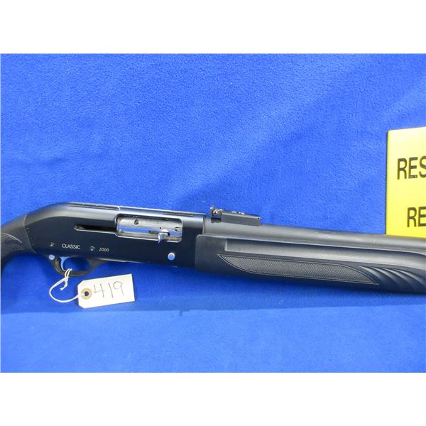 Non-Restricted - Sabatti Classic Model 2000 in 12 Ga. 2 3/4" - This semi-auto shotgun appears to be in good to very good working order. Barrel is 24", bore is good, bluing is good with light scratches, front sight missing but has rear sight, synthetic stock and forearm are good with usage marks, rubber butt pad good, comes with swivels. Ser #A38366