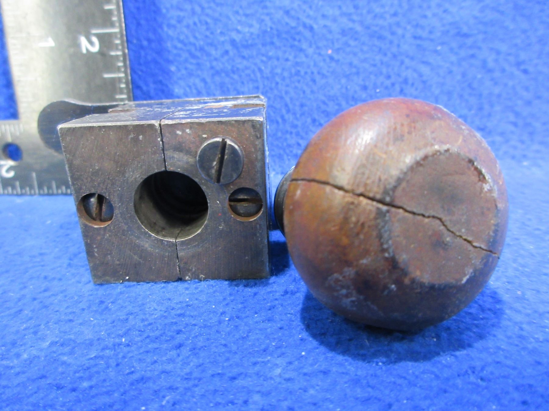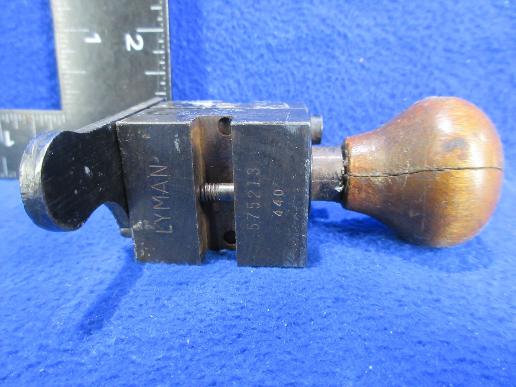 Lyman 58 Cal. Minie Ball Single Cavity Bullet Mold 575 213 - Wood handle is cracked