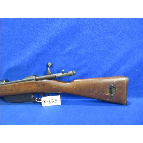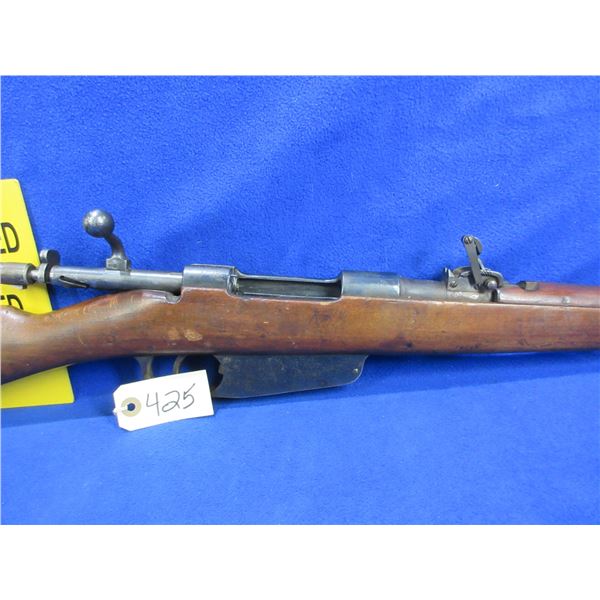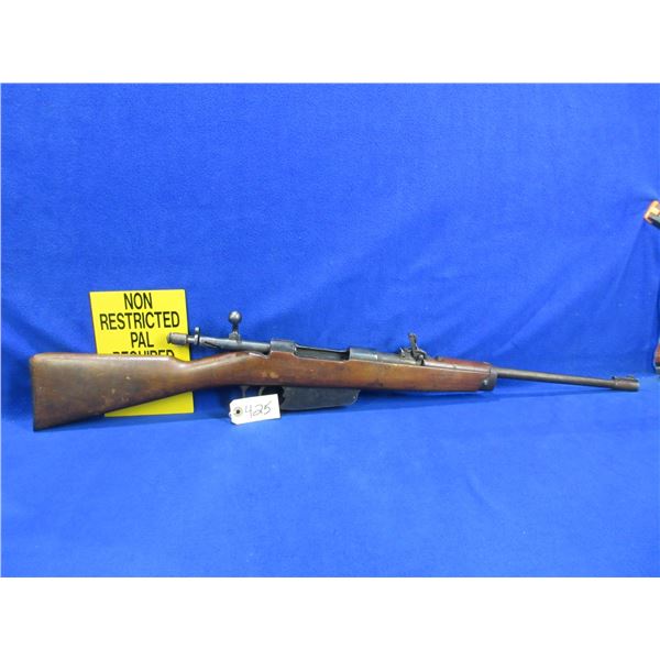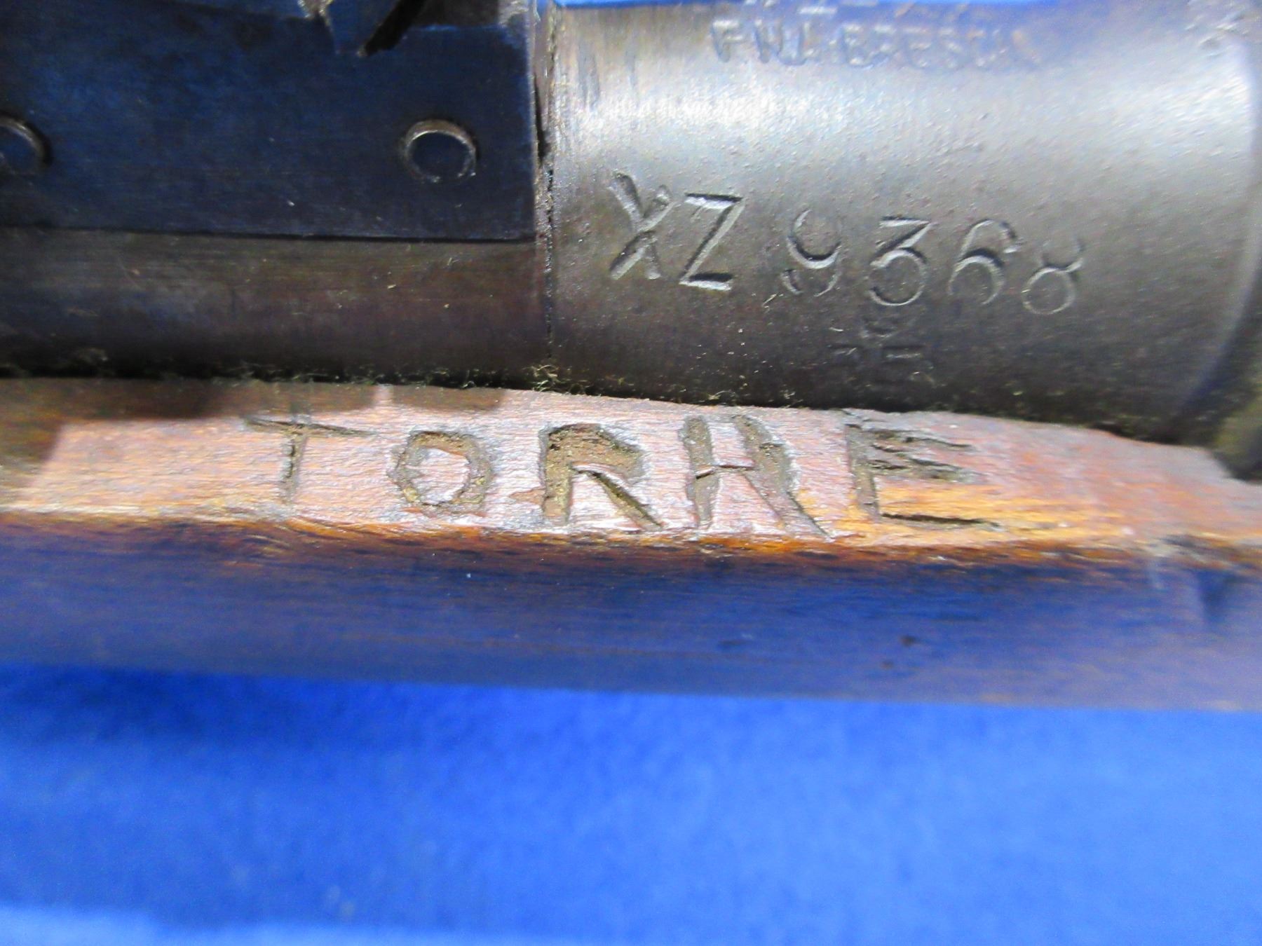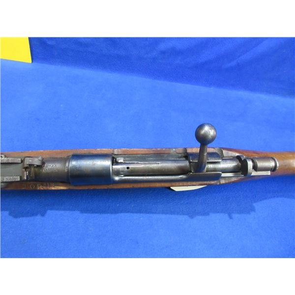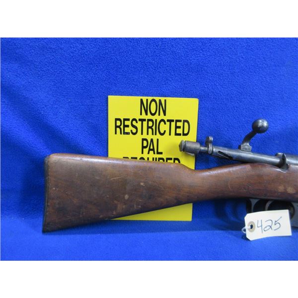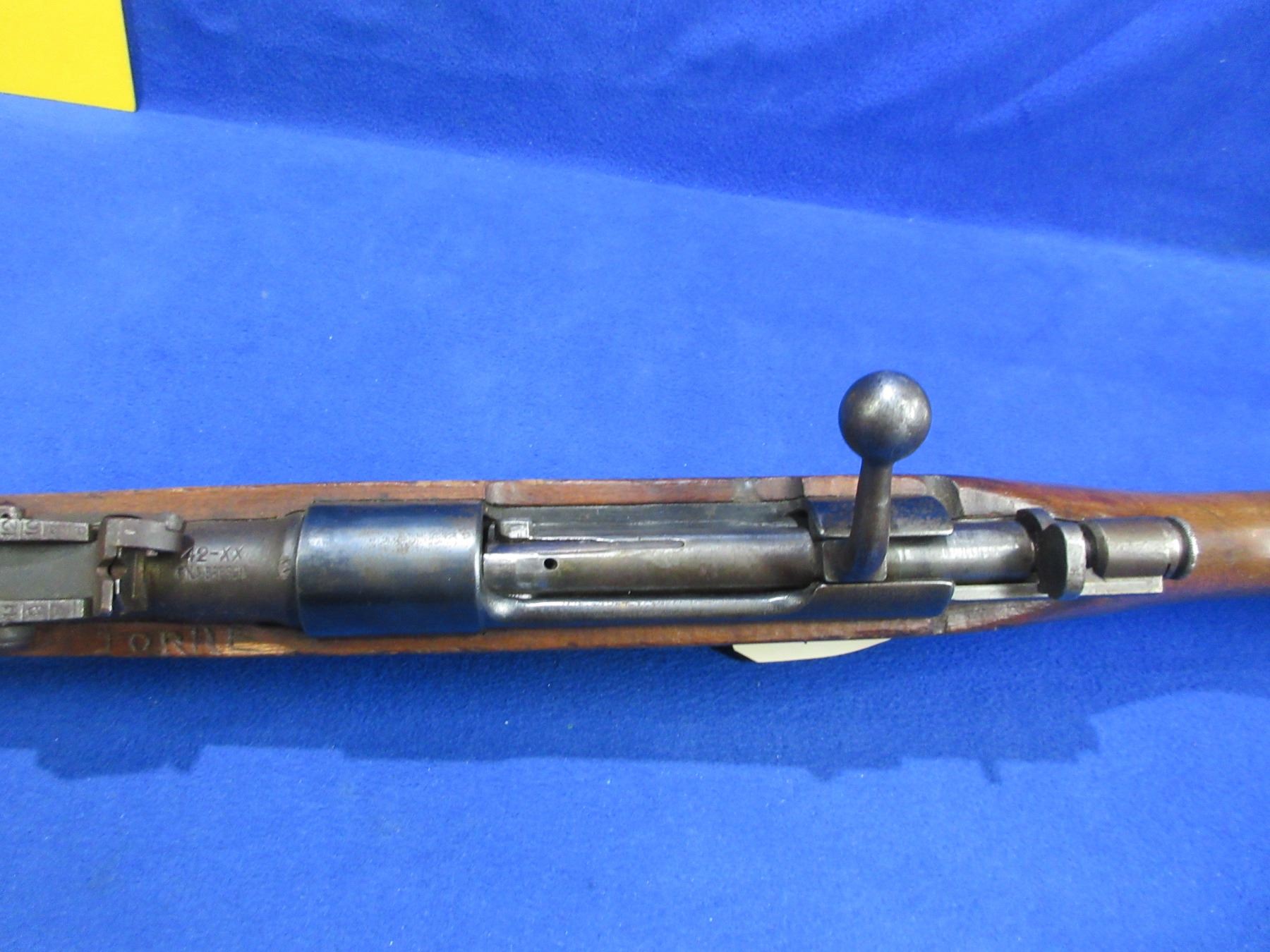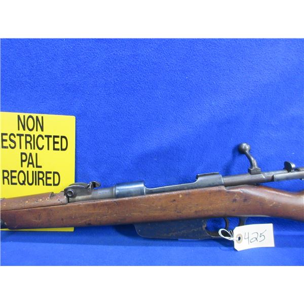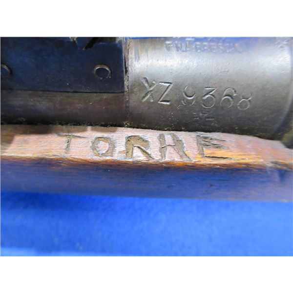 Non-Restricted - Italian Carcano Carbine in 6.5mm - This bolt action rifle with internal magazine appears to be in working order. Barrel is 17 1/2", rifling is good to very good, bluing is turning brown with light pitting, has both sights but rear sight ajustment arm is damaged, stock is good with many usage marks and engraved at top of forearm, metal butt plate good, comes with side sling mounts, stock and action are numbers matching. Ser #XZ9368