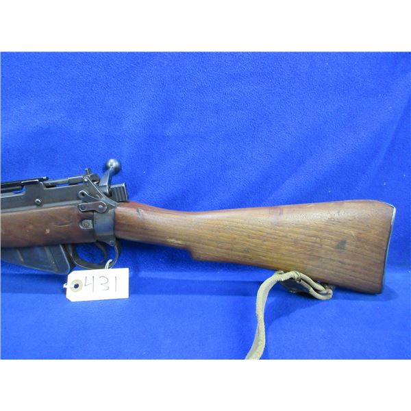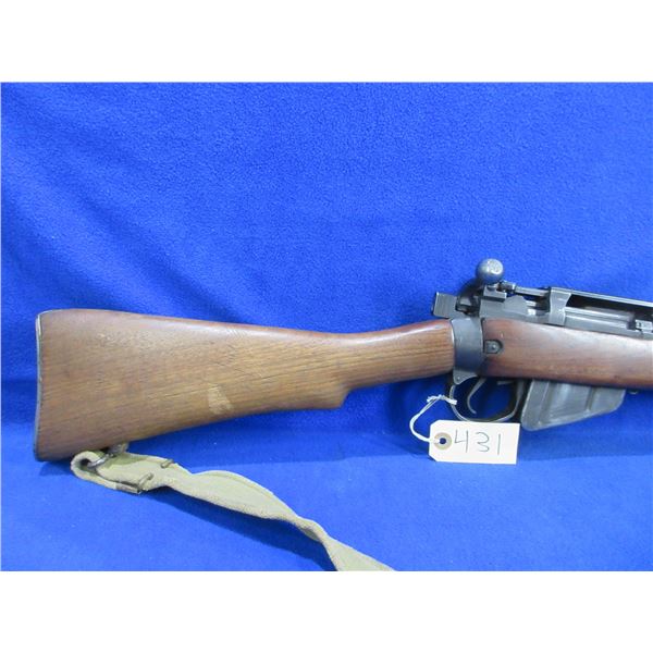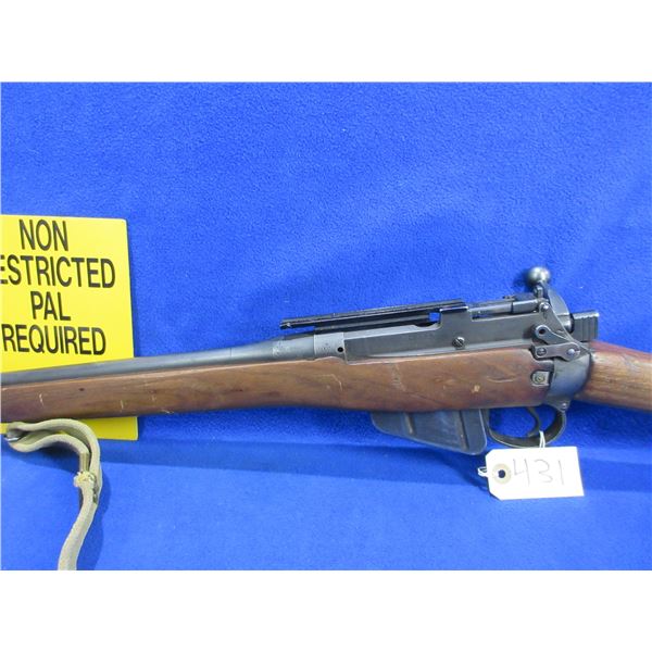 Non-Restricted - Lee Enfield No. 4 Mk I Long Branch 1943 in 303 British - This bolt action rifle with removable magazine appears to be in good working order. Barrel is 23 3/4", rifling is good, bluing is turning grey, has both sights and a Weaver TO 1 base, stock is good with usage marks and a small crack at the front right top of the forearm, metal butt plate good, comes with swivels and web sling. Ser #38L2426
