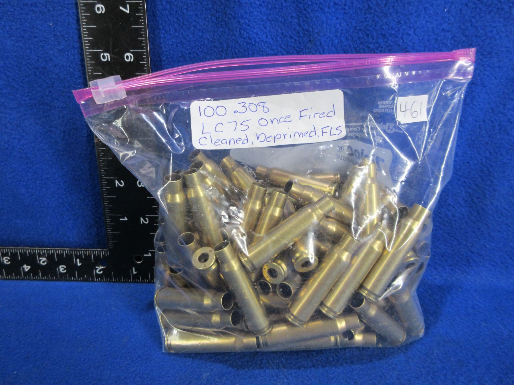 Lot 461 Brass Only - 308 Win. 1x Fired, Cleaned, Deprimed, FLS