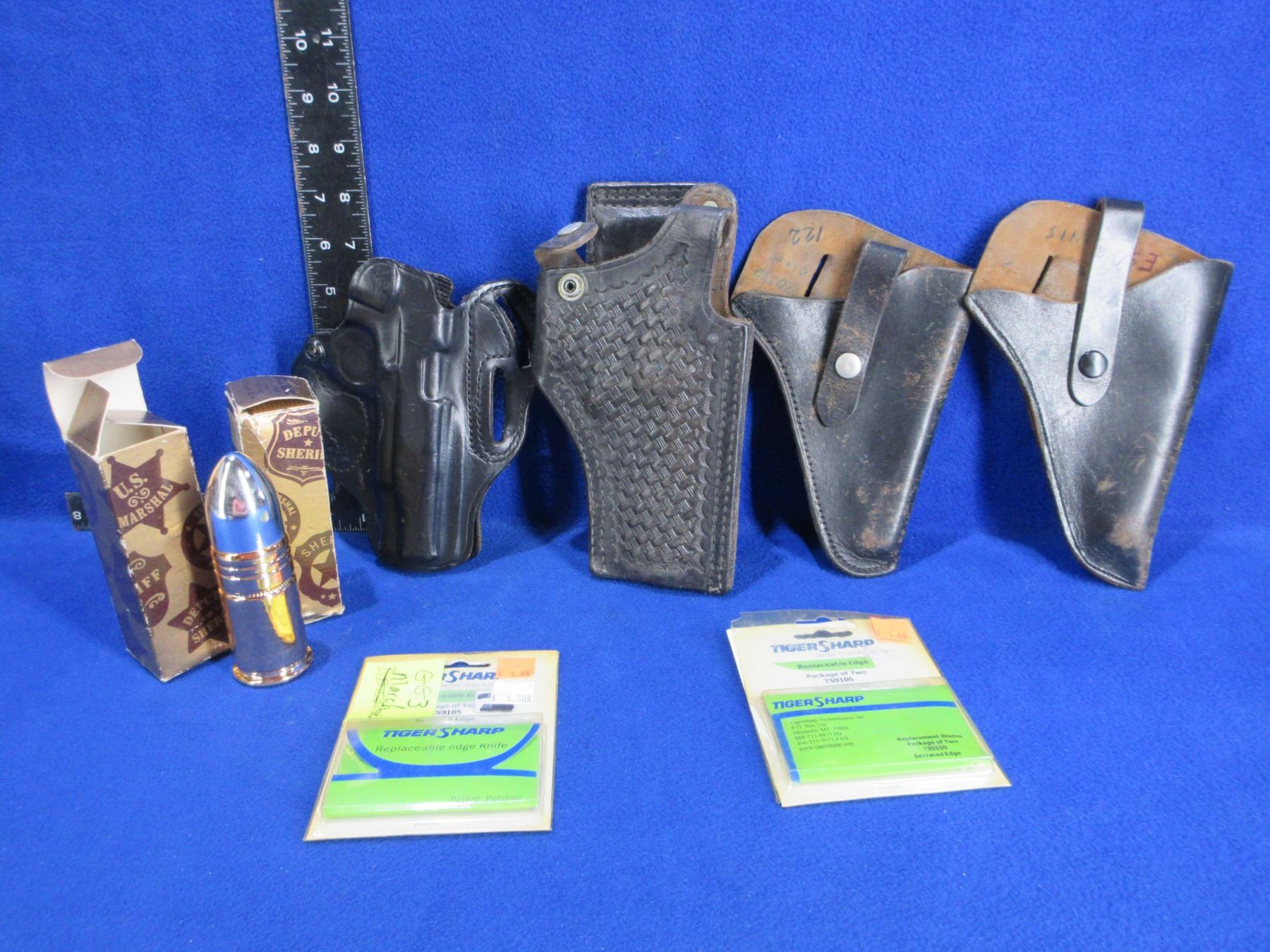 4 Right Hand Leather Holsters, Tiger Sharp Blades (2 Packs), 2 Avon Bullet Aftershave