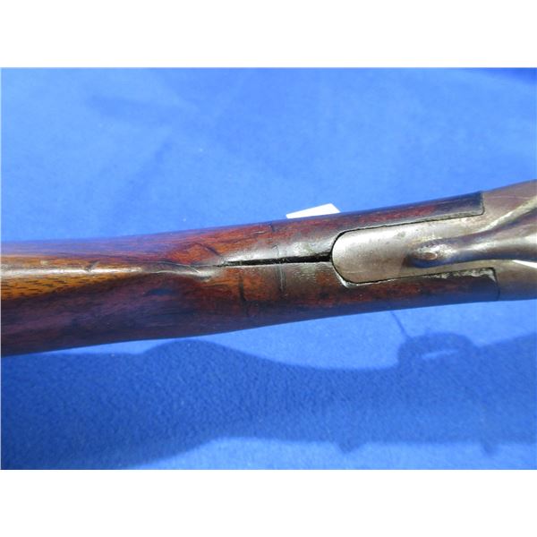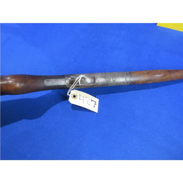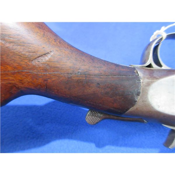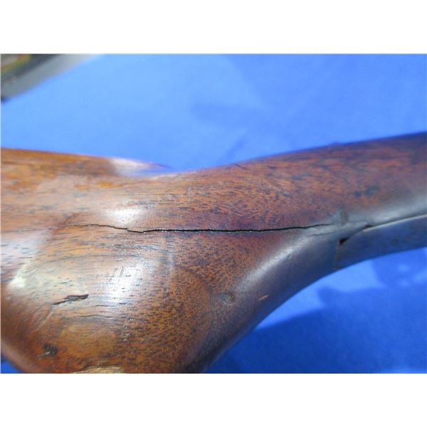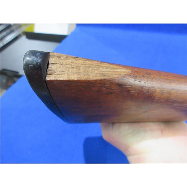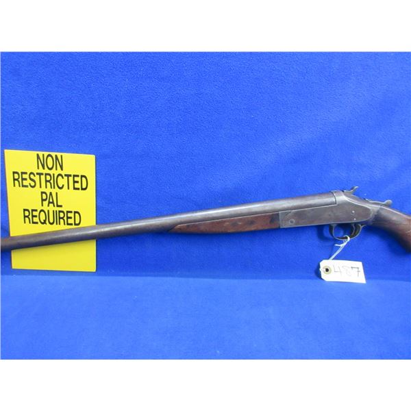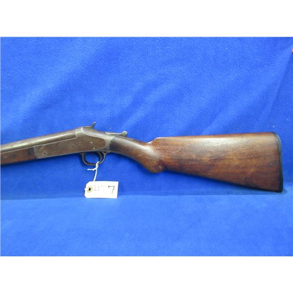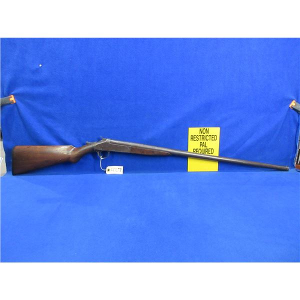 Non-Restricted - Harrington & Richardson in 16 Ga. 2 1/2" - This tip up single shot shotgun appears to be in working order but should not be fired as stock has multiple cracks in the wrist area, action is has a small amount of play. Barrel is 30", bore is fair to good, bluing is turning brown with light pitting, has bead front sight, stock has multiple cracks in the wrist area and a chip on the toe, forearm is good with usage marks, butt plate good. Ser # 54299