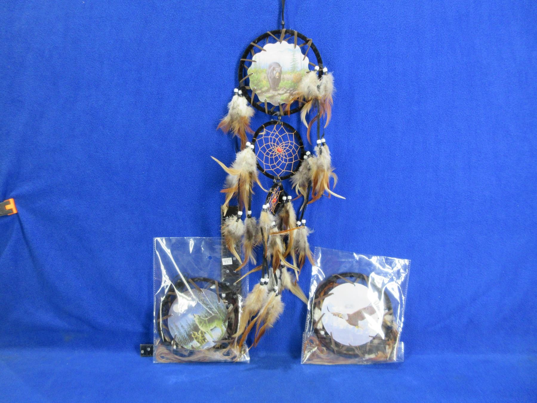 Lot 489 NEW - 3 Dream Catchers - Grizzly Bear, Wolves, Bald Eagle