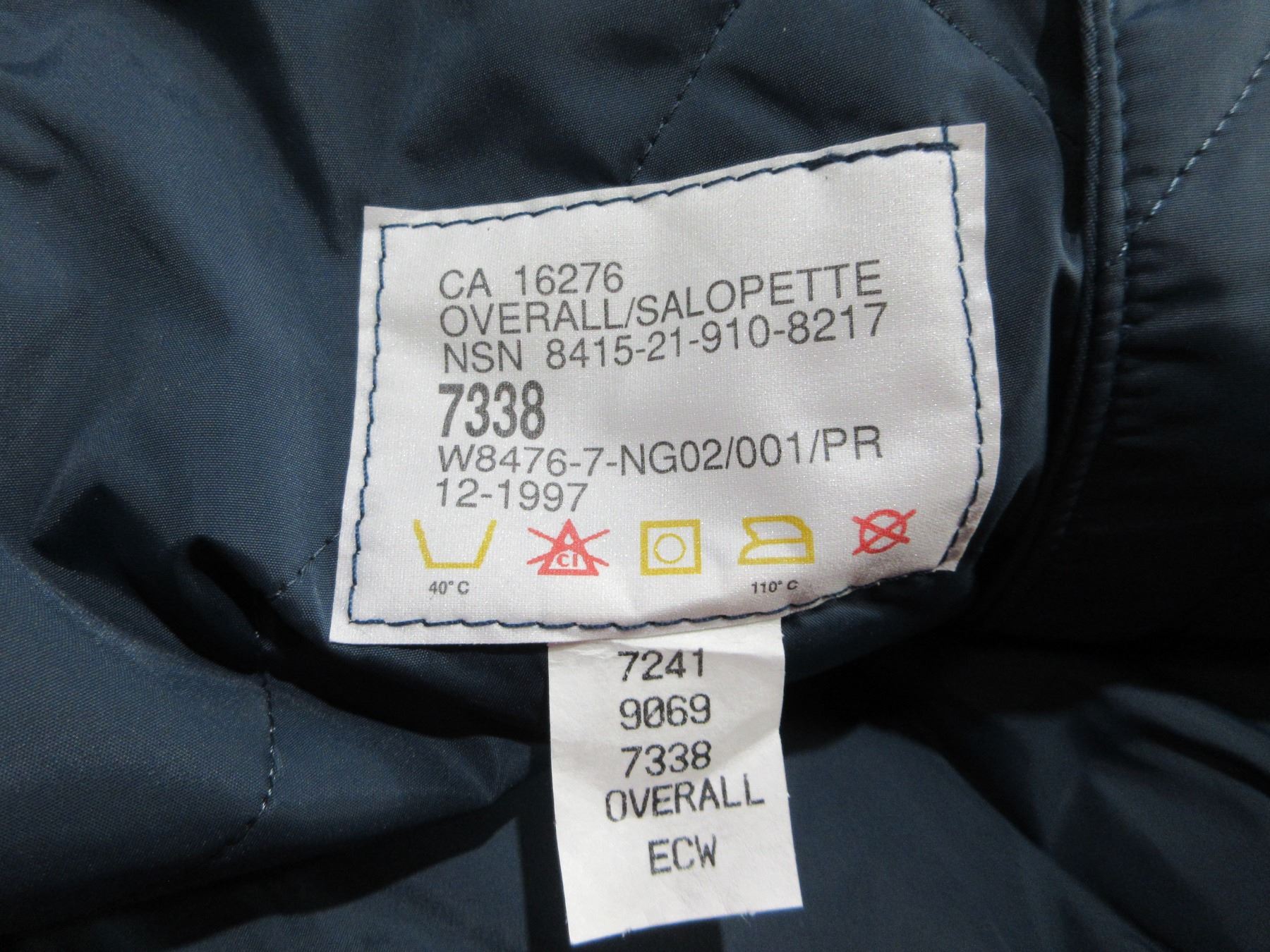 Cold Weather Overall 7338 - Height 73", Waist 38" - New Old Stock