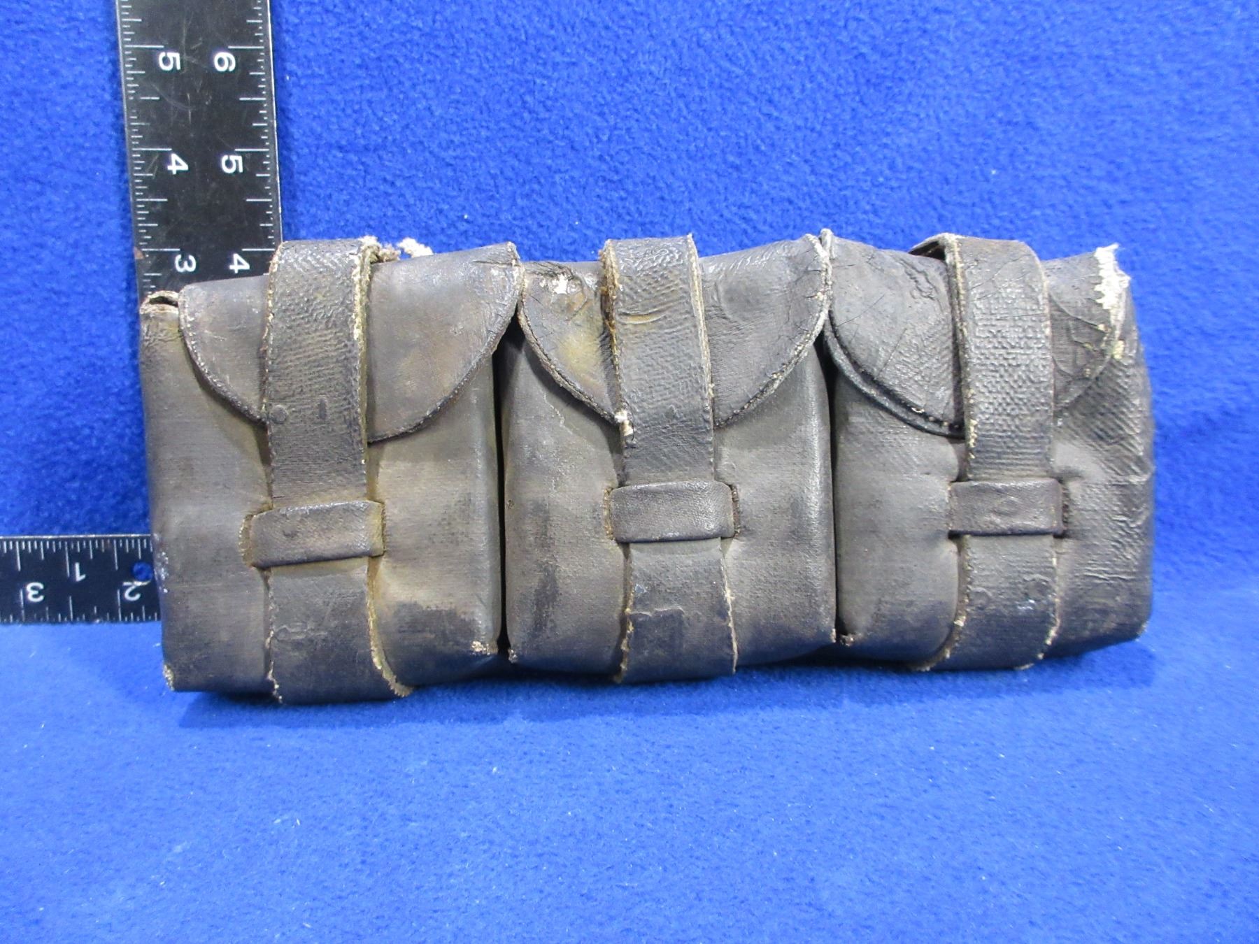 WWII German 3 Compartment Ammo Pouch - Leather is Hardened
