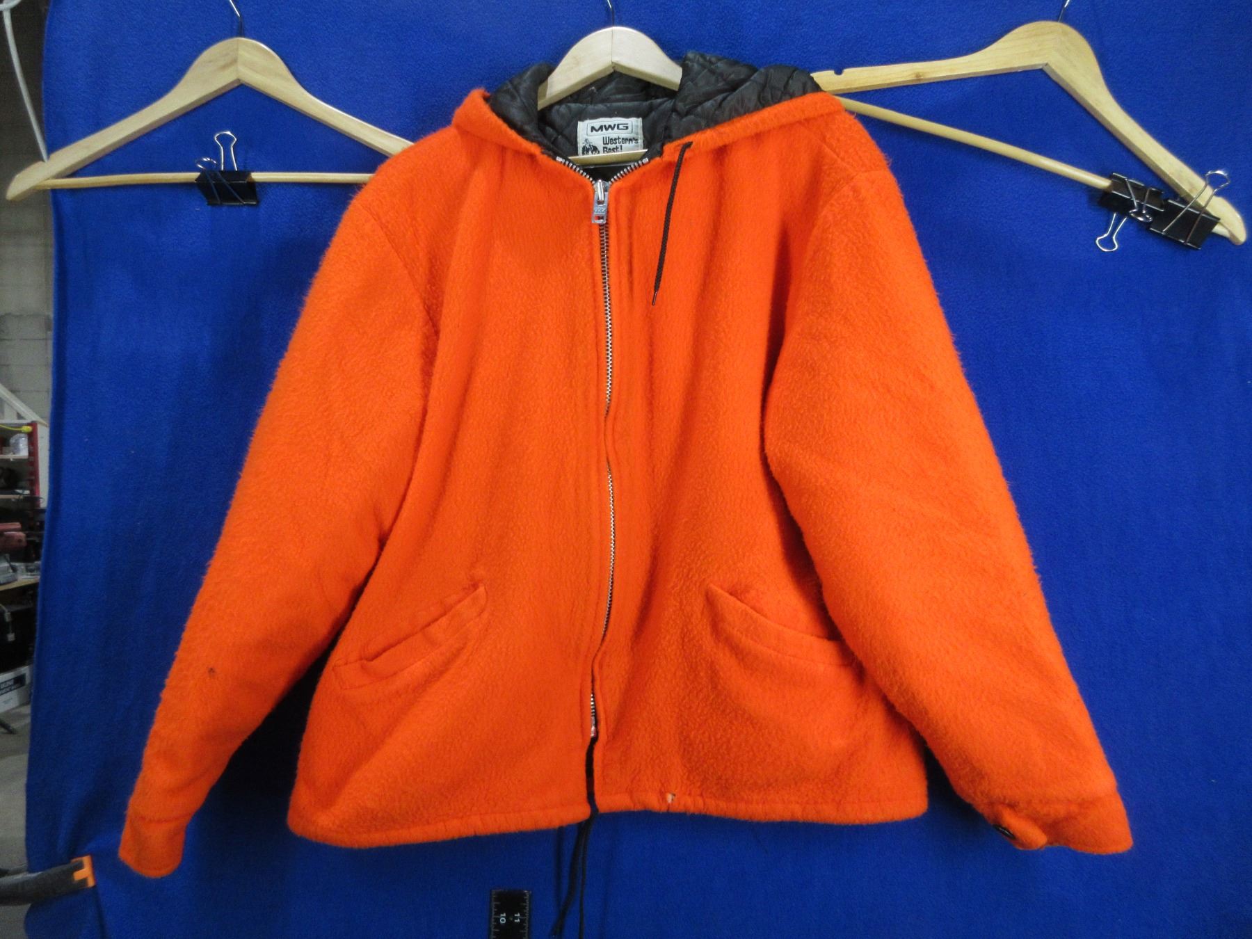 MWG Quilted Jacket - Size Small - Orange - has a small tear on the bottom front