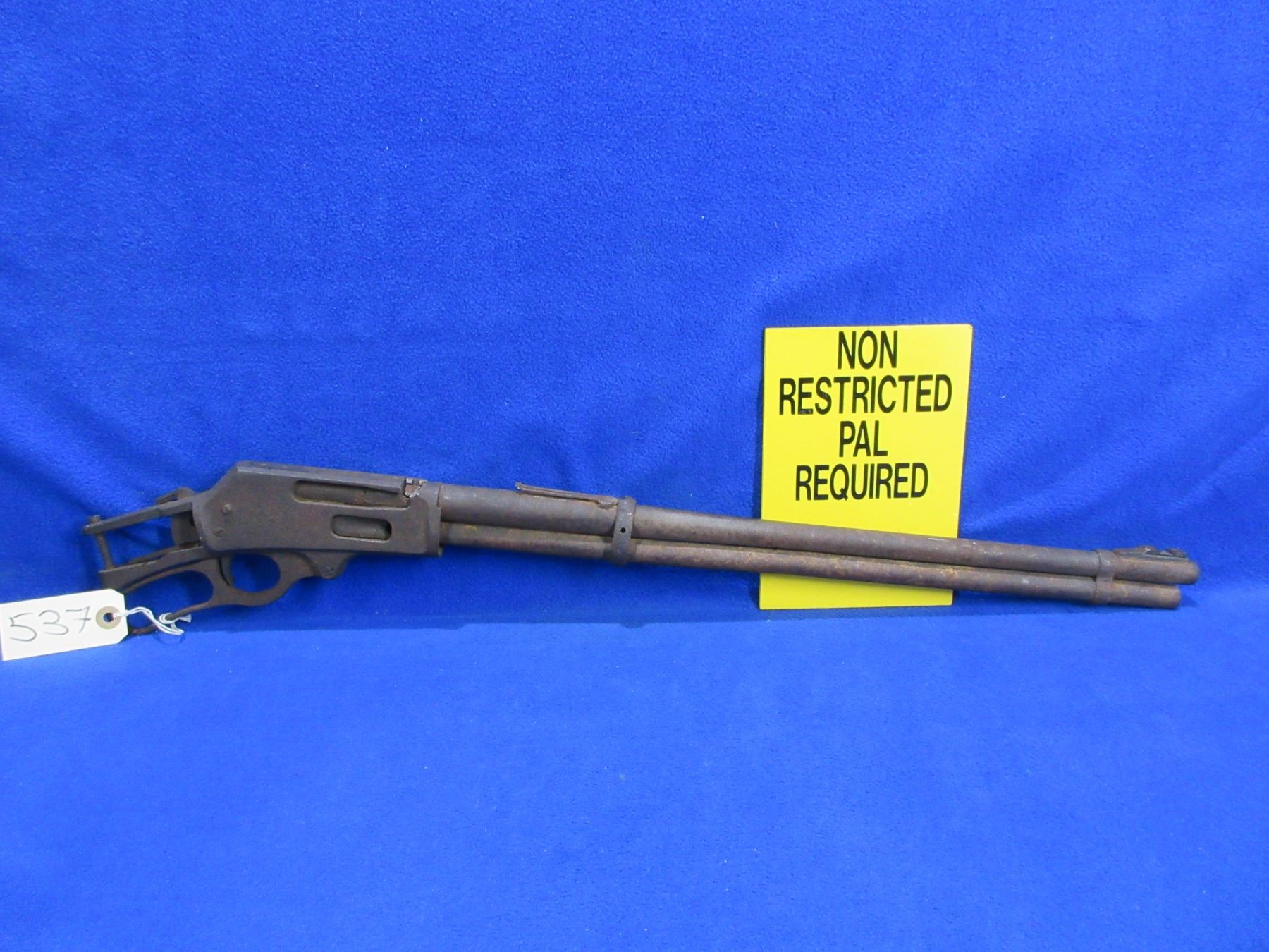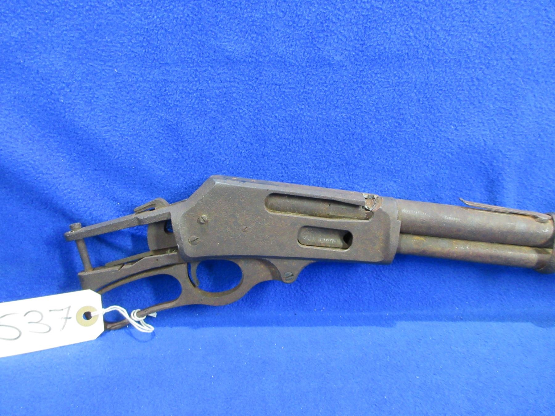 Non-Restricted - Barreled Action - Marlin 336 in 30-30 Win - This is a barrel, action, trigger assembly and lever only. Barrel is 20", action is seized and has hacksaw marks on top. Everything is rusted and pitted, has front sight, rear sight is broken. Ser #25001843