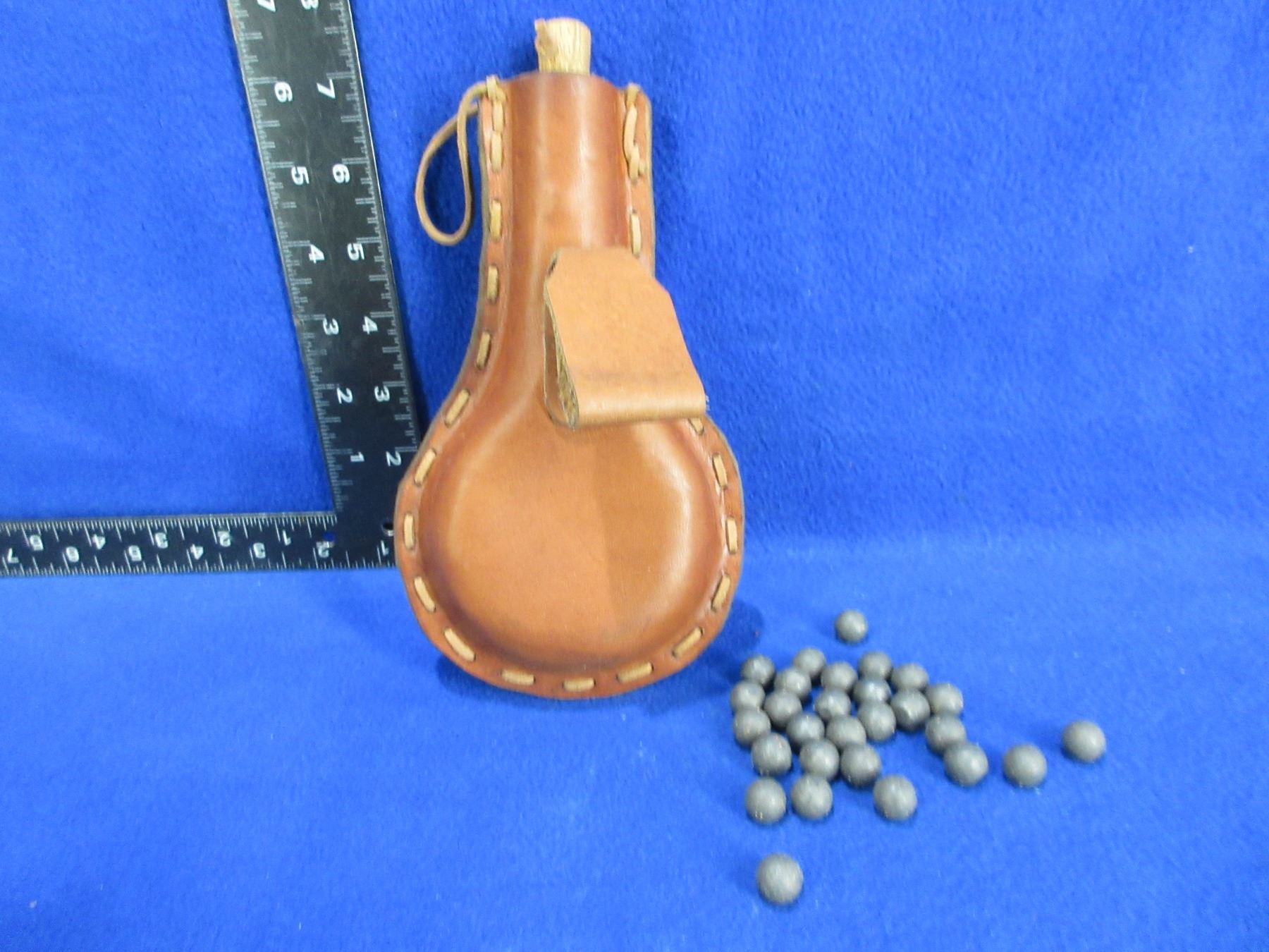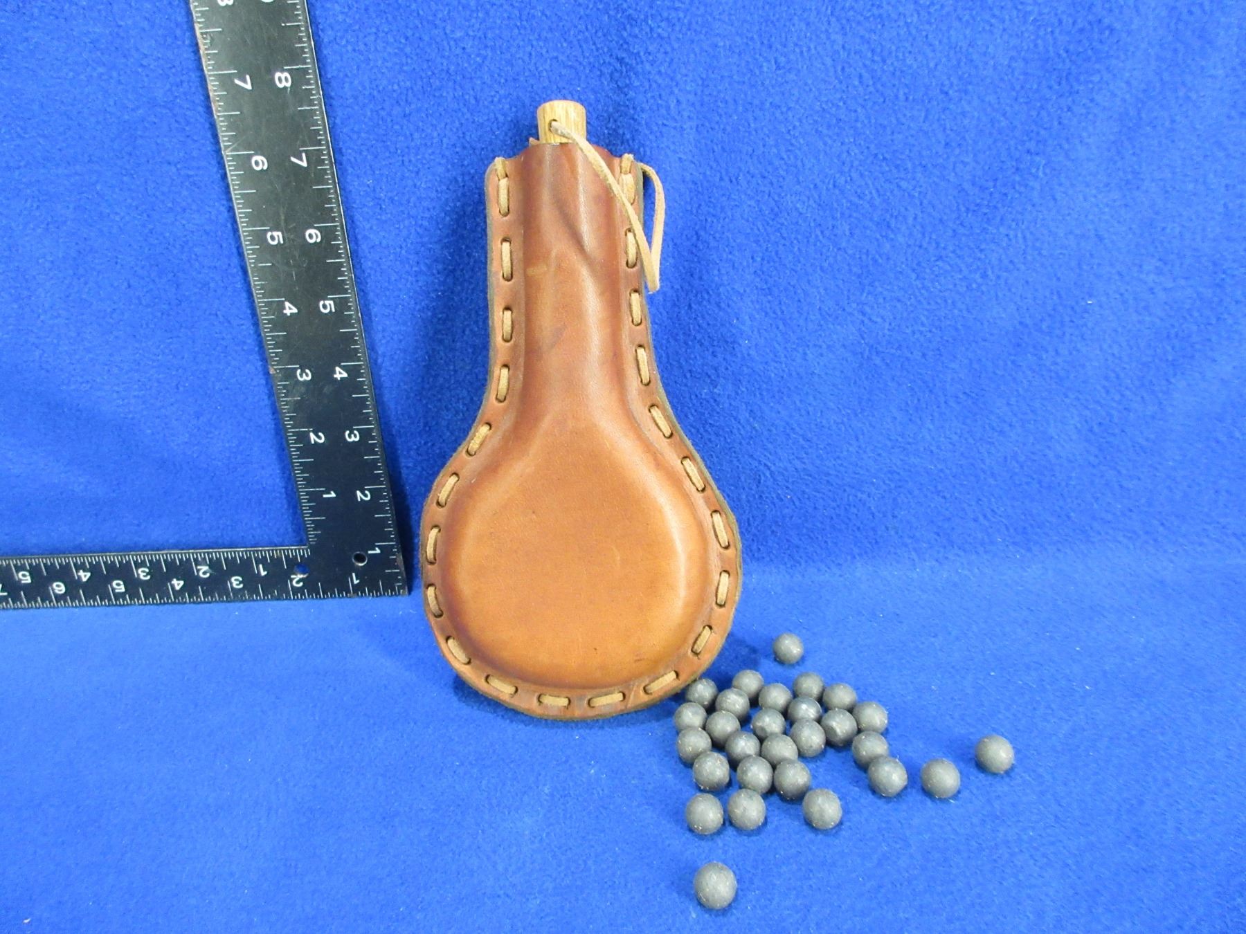 Leather Powder/Shot Flask with Wood Stopper - Comes with 28 Lead Balls - Approx. .440"