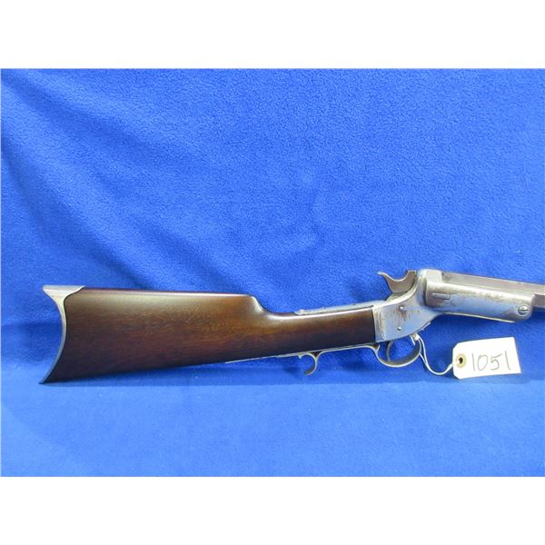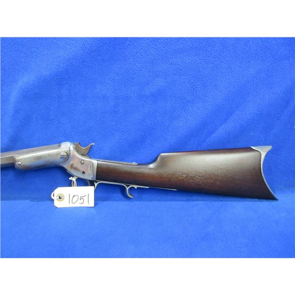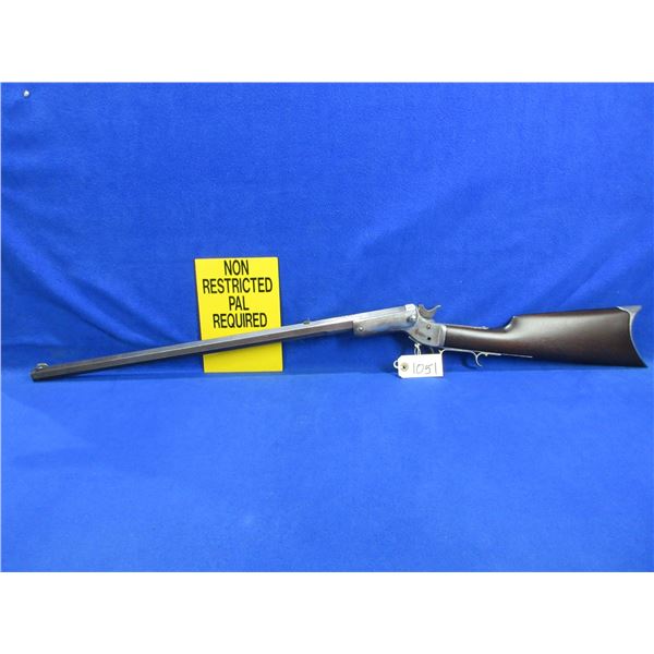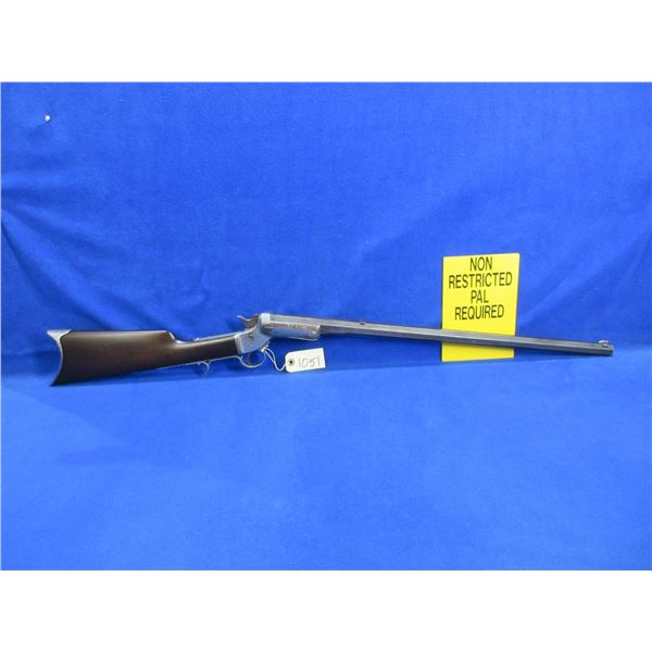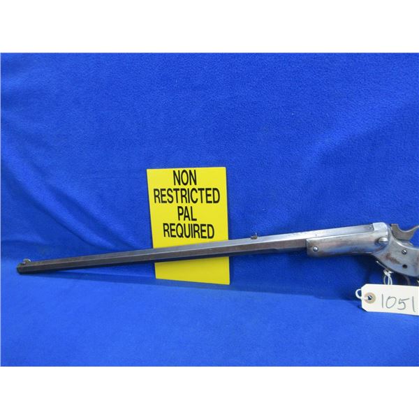 Non-Restricted - Stevens Tip Up Single Shot in 22 Short - This rare and desirable single shot tip up rifle appears to be in good to very good working order. Octagon heavy barrel is 24", rifling is good but barrel has been sleeved, bluing is turning brown, has both sights, stock is very good and appears restocked, crescent metal butt plate good. Ser # 12820