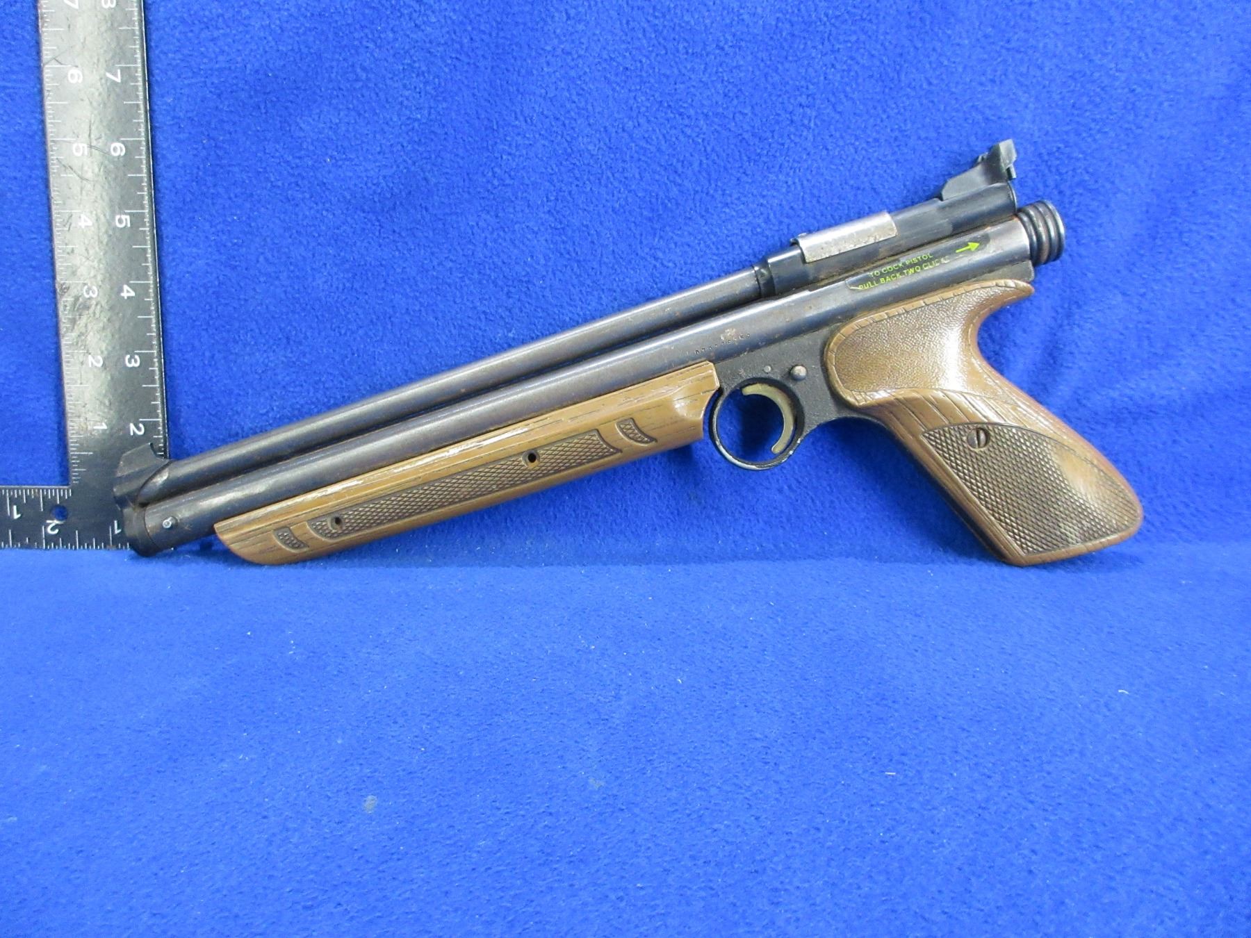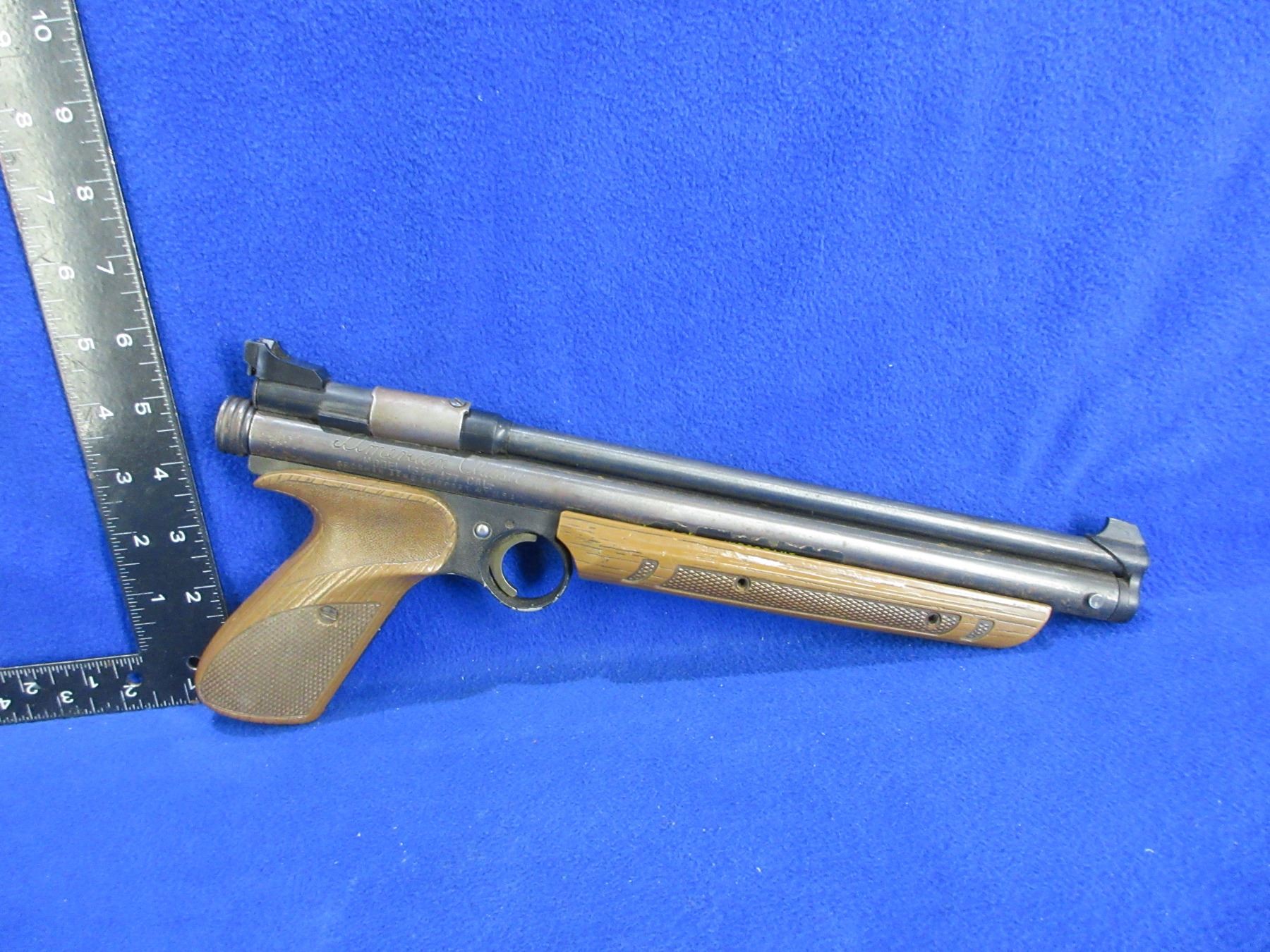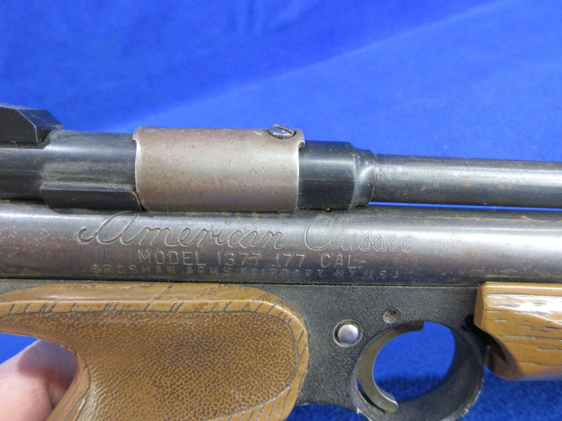 No PAL Required - 177 Cal. Crosman American Classic Model 1377 Pump Air Pistol - Appears to be in working order, rifling is good, has some light rust and pitting, grips and forearm are good.