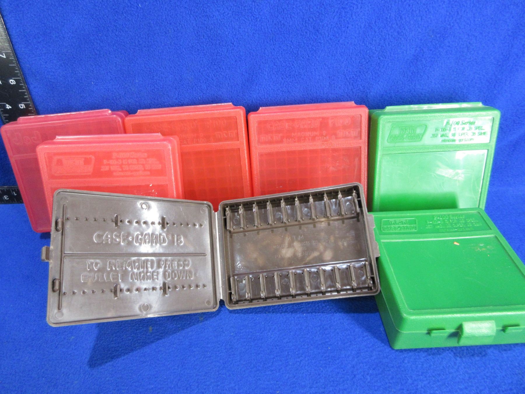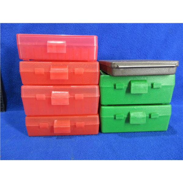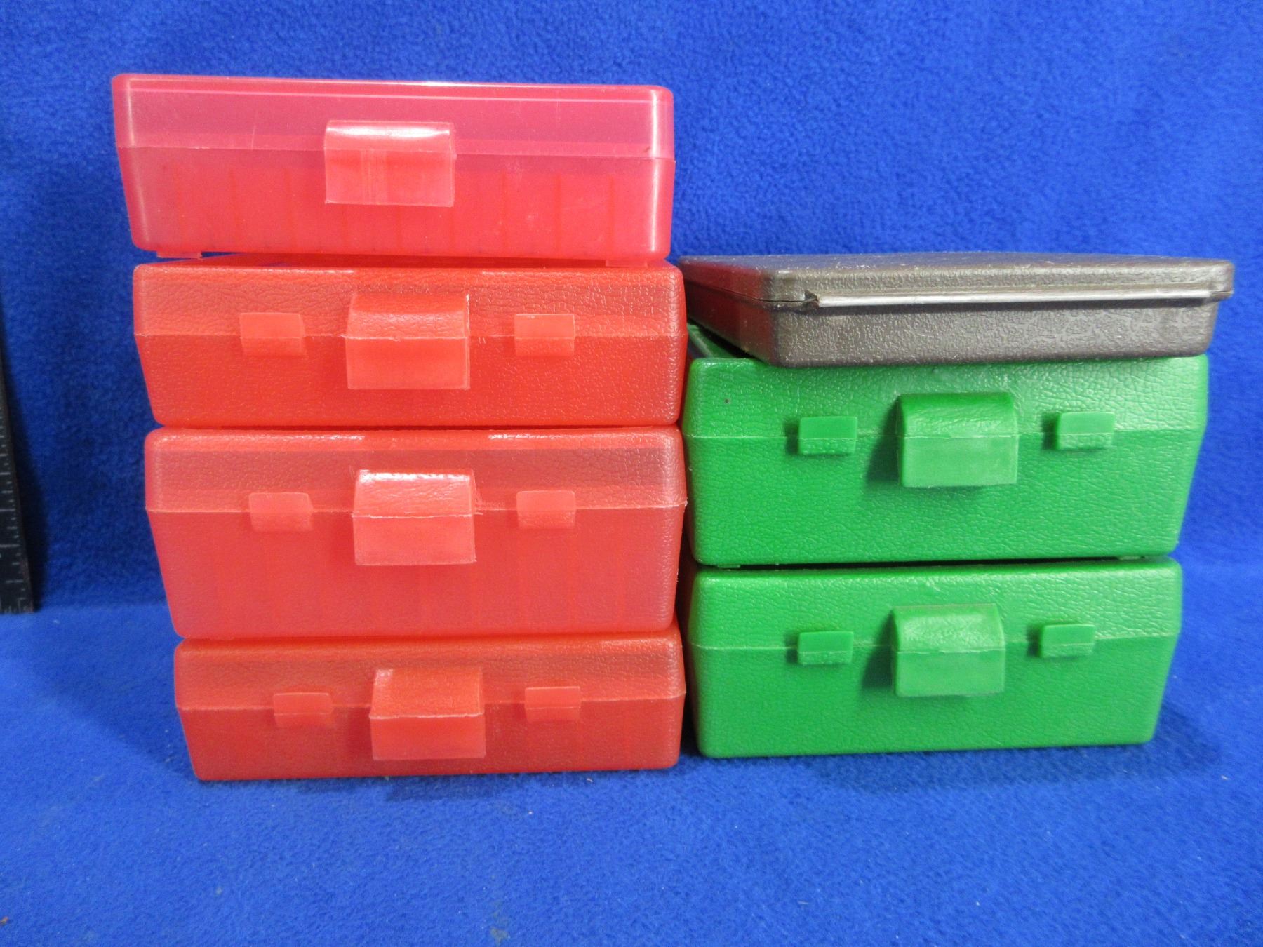 7 Plastic Ammo Boxes - 9MM x 3, 357/38 x 3, 41 Mag x 1