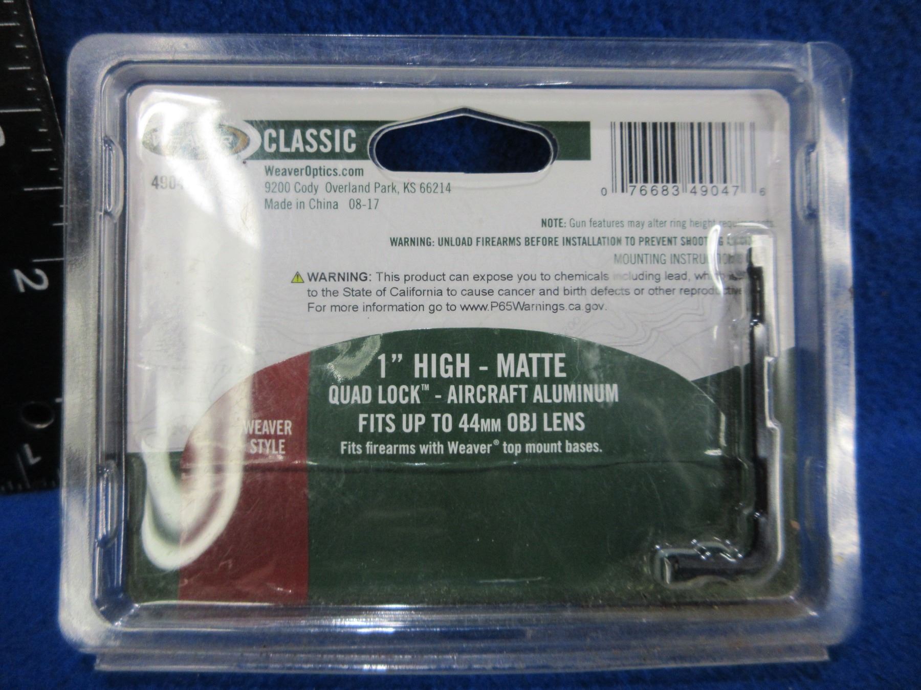 Lot 1073 NEW - Weaver Classic 1" High Rings, Quad Lock, Matte