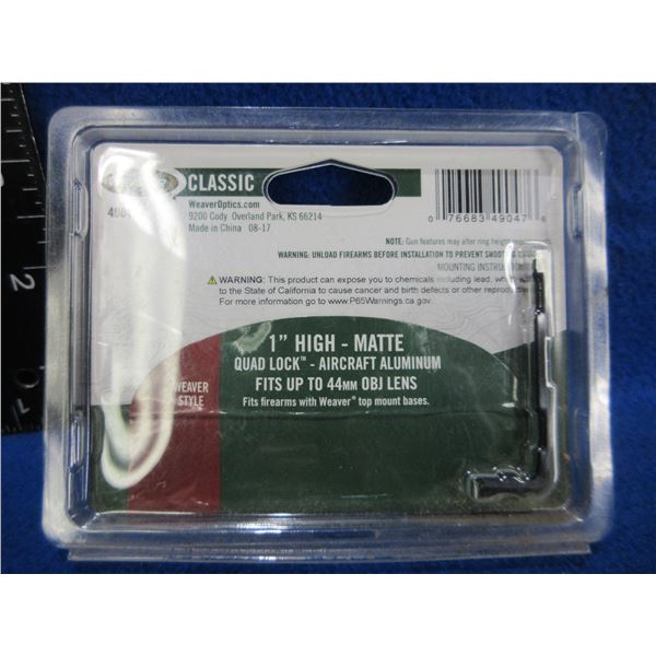 NEW - Weaver Classic 1" High Rings, Quad Lock, Matte # 49047