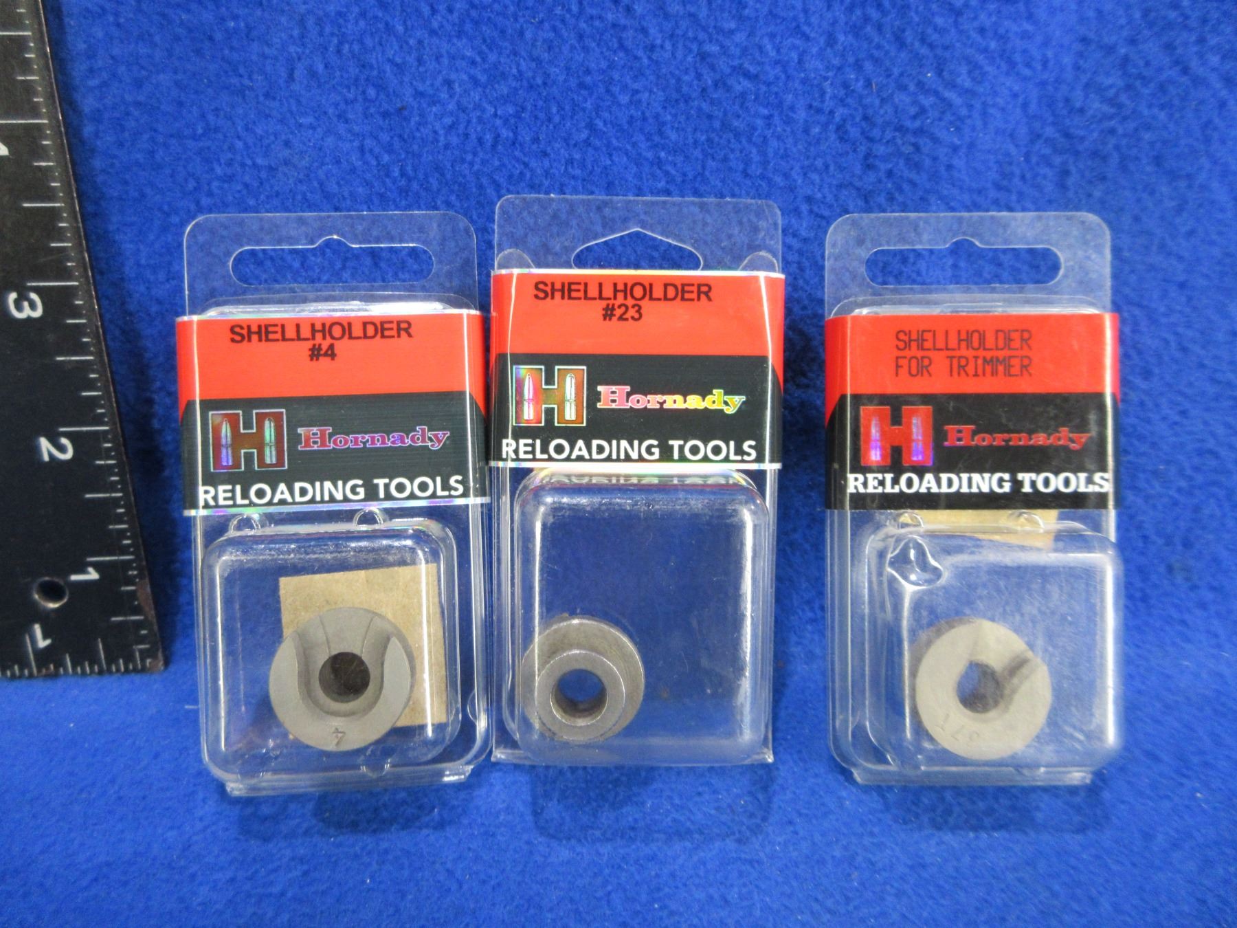 Lot 1083 NEW - 3 Hornady Shell Holders - #'s 4, 23 & 37T for Trimmer