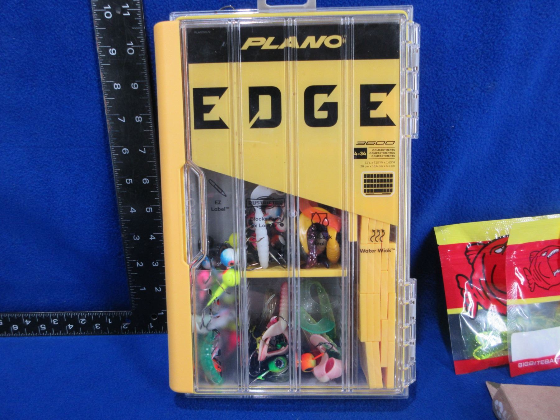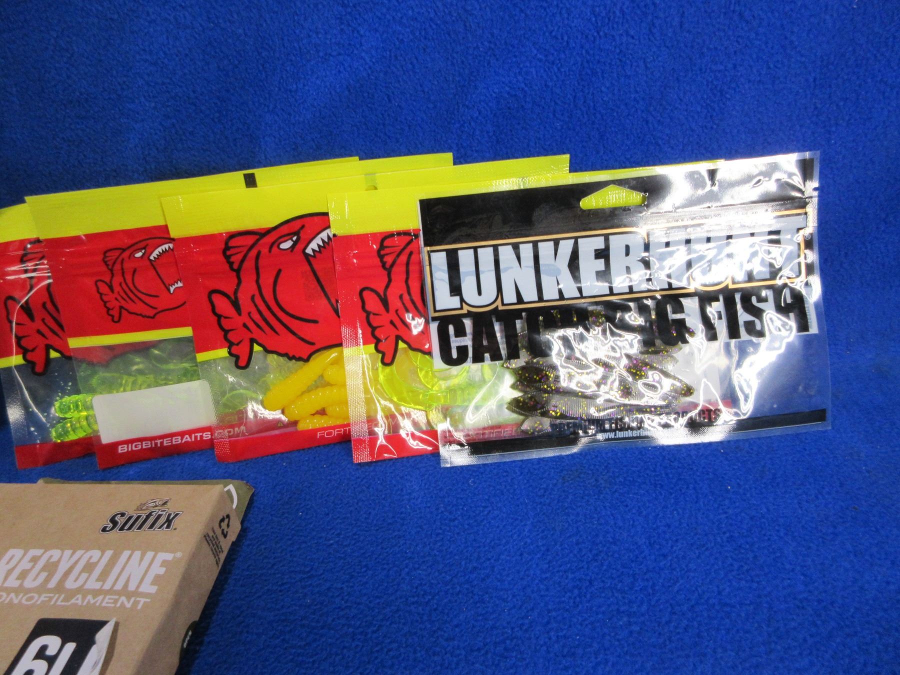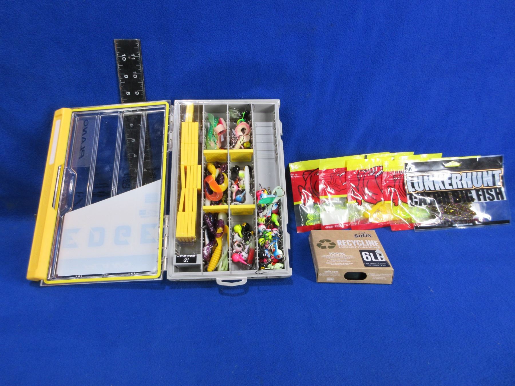 Lot of Misc. Fishing Tackle & Plano Edge Compartment Case - Big Bite Baits, 6 lb Monofilament, Hooks, Etc.