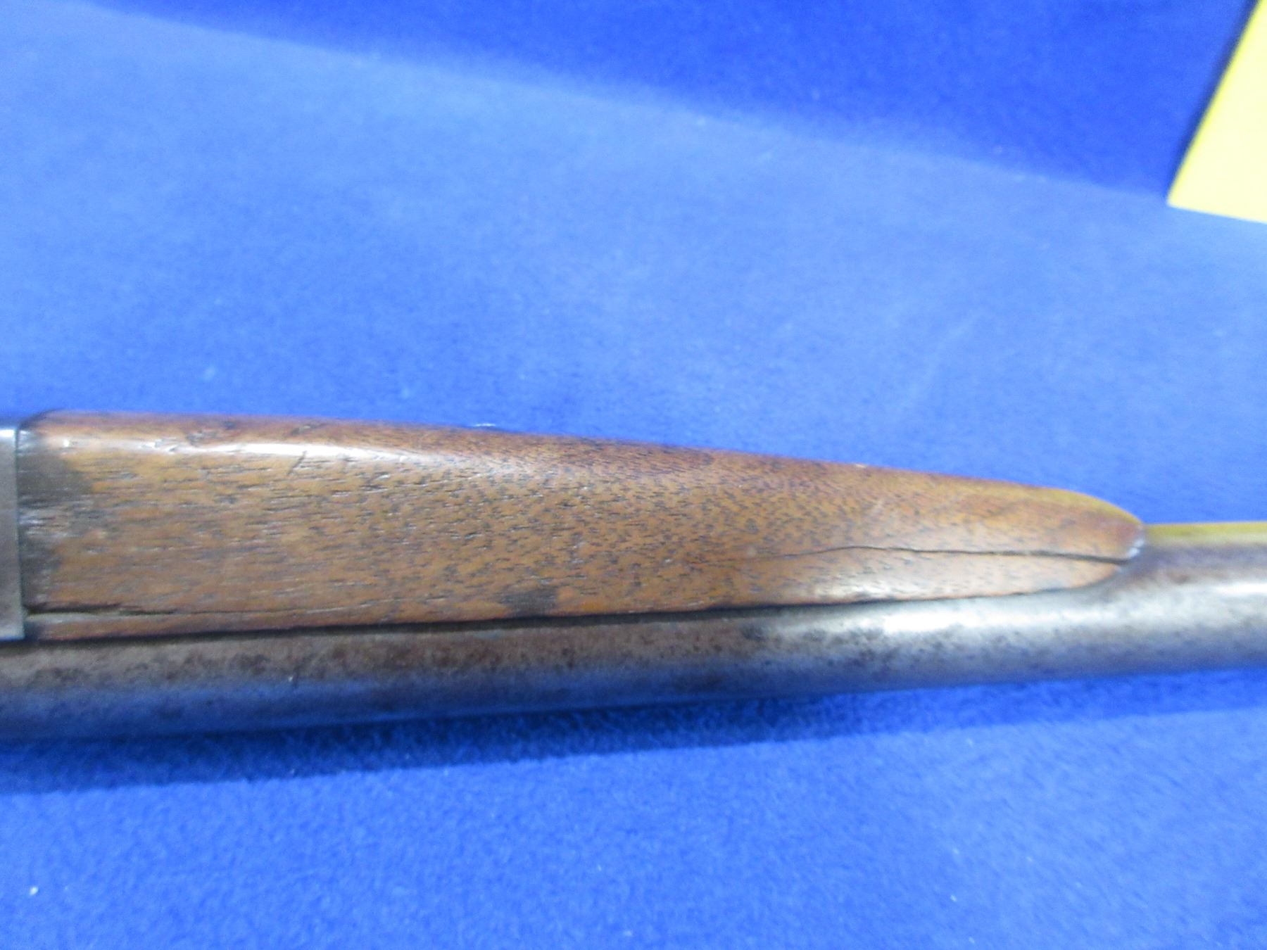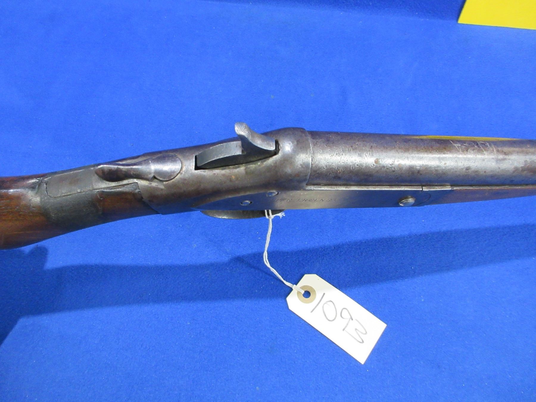 Non-Restricted - Spencer Gun Co. in 12 Ga 2 1/2" - This tip up single shot shotgun appears to be in working order but should not be fired as stock is cracked, action is tight. Barrel is 29 3/4"", bore is fair to good, bluing is gone with some pitting, has bead front sight, stock is cracked top and bottom of the wrist area, forearm has crack on the left side, butt plate poor. Ser # 191519