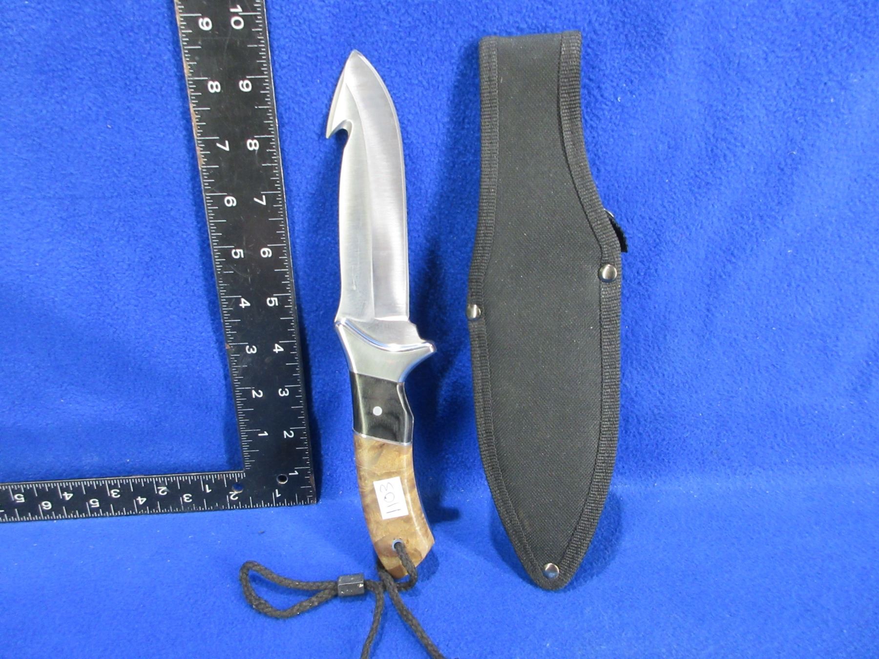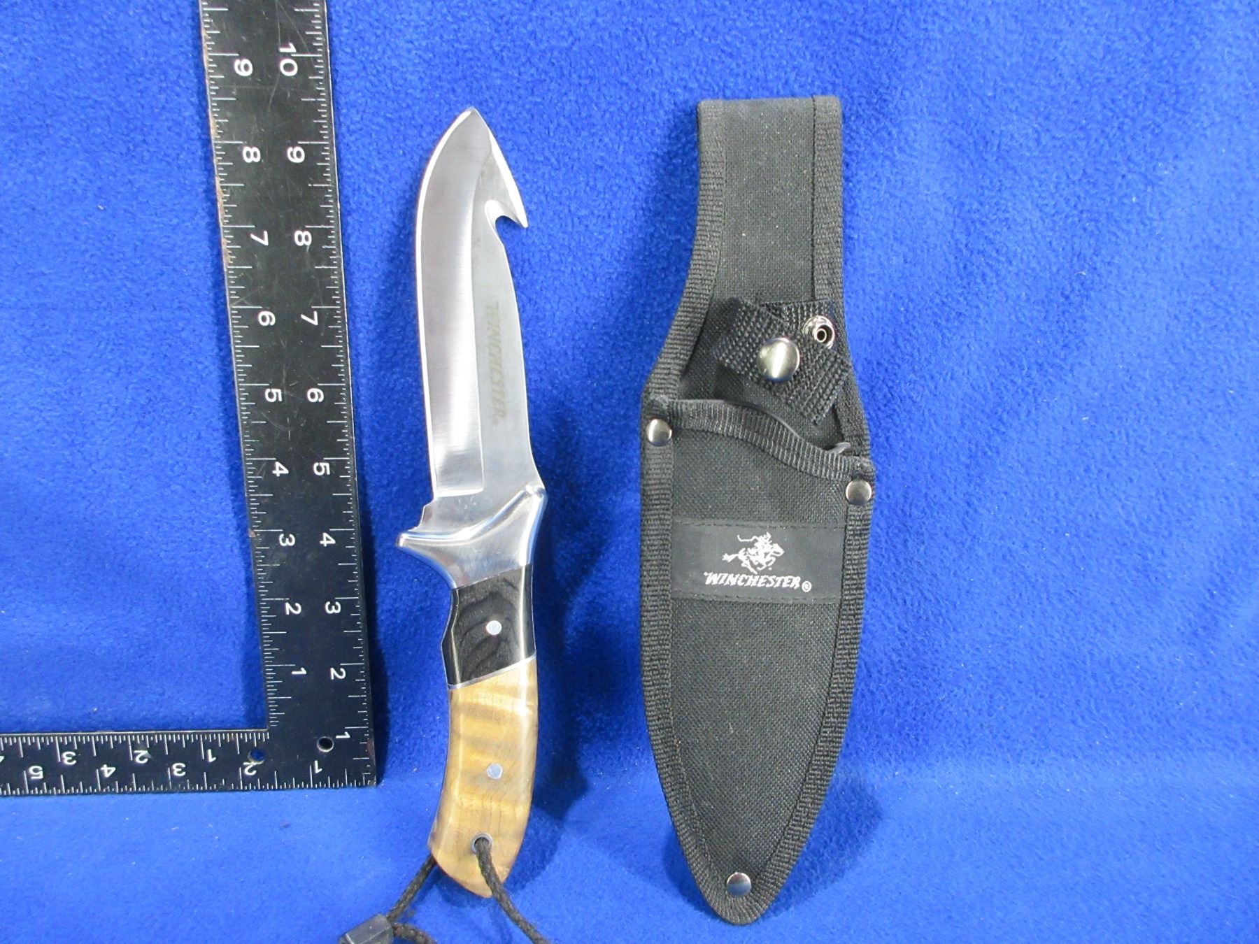 Lot 1103 Winchester Fixed Blade Gut Hook Burl Wood Hunting Knife