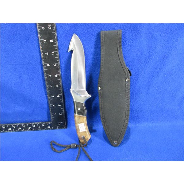 Winchester Fixed Blade Gut Hook Burl Wood Hunting Knife with Sheath - 5" Blade