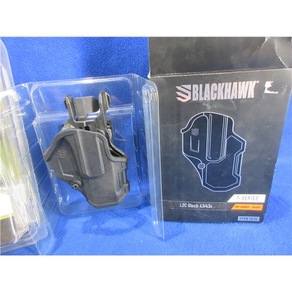 NEW - Blackhawk T-Series Holster (Fits L2C Glock 43/43X, Hip Carry, Right Hand) & Uncle Mike's Tactical Kydex Open Top Holster (Fits Glock 26, 27, 33, 28, Size 12, Left Hand, 54122)
